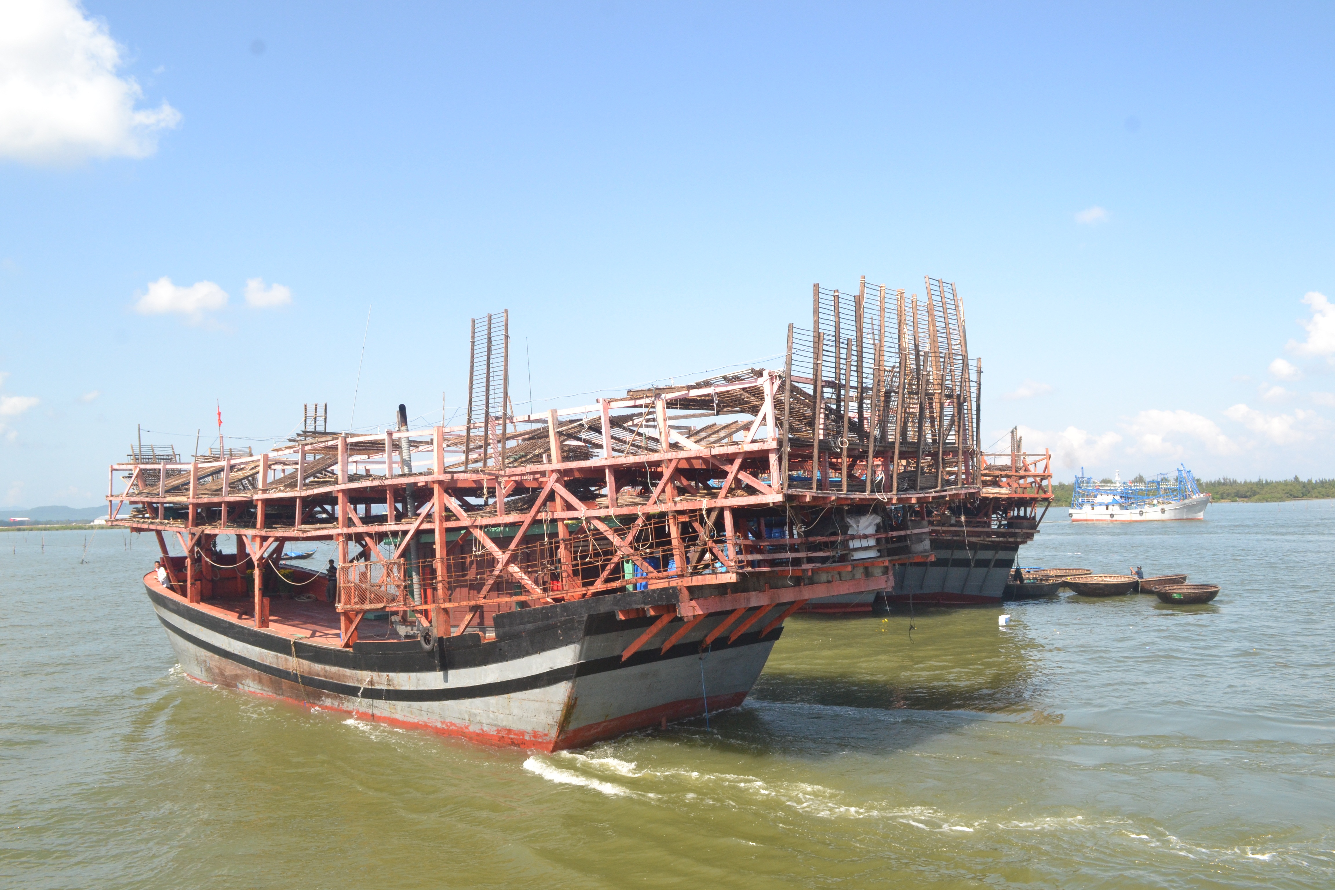 (Ảnh: Tàu câu mực của ngư dân Thăng Bình chuẩn bị ra khơi)