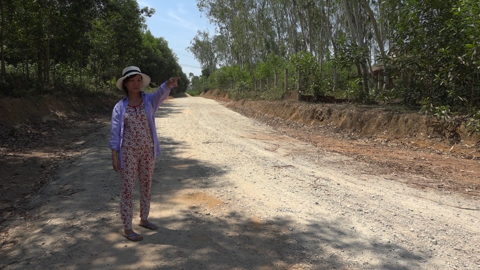 (Ảnh: Gia đình bà Lê Thị Thành đã hiến 1.800 mét vuông đất trồng keo để làm đường ĐH21)