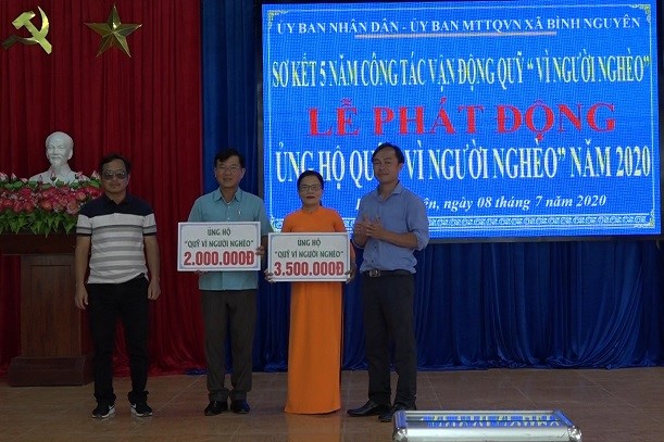 Trong 5 năm qua, bằng nhiều hình thức như tổ chức lễ phát động, vận động theo hộ gia đình… quỹ vì người nghèo của xã Bình Nguyên đã tiếp nhận được gần 390 triệu đồng, cùng với sự hỗ trợ của Ủy ban MTTQ huyện Thăng Bình, Bình Nguyên được đã xây mới được 5 nhà, sửa chữa 22 nhà đại đoàn kết, trao 7 con bò sinh sản cho hộ nghèo, cận nghèo với tổng kinh phí trên 522 triệu đồng. Ngoài ra hằng năm, Mặt trận cùng với các hội đoàn thể, các khu dân cư đã tặng sổ tiết kiệm, tặng quà, trợ cấp đột xuất, hỗ trợ vốn để giúp cho hộ nghèo phát triển sản xuất, cải thiện đời sống; qua đó, góp phần giảm tỷ lệ hộ nghèo của xã xuống còn 2,26%. Tại lễ phát động ủng hộ quỹ vì người nghèo năm 2020, đông đảo các cá nhân, các nhà hảo tâm, cán bộ, công nhân viên chức và các cơ quan, đơn vị, các doanh nghiệp… đã ủng hộ vào quỹ vì người nghèo của xã Bình Nguyên được hơn 55 triệu đồng./.