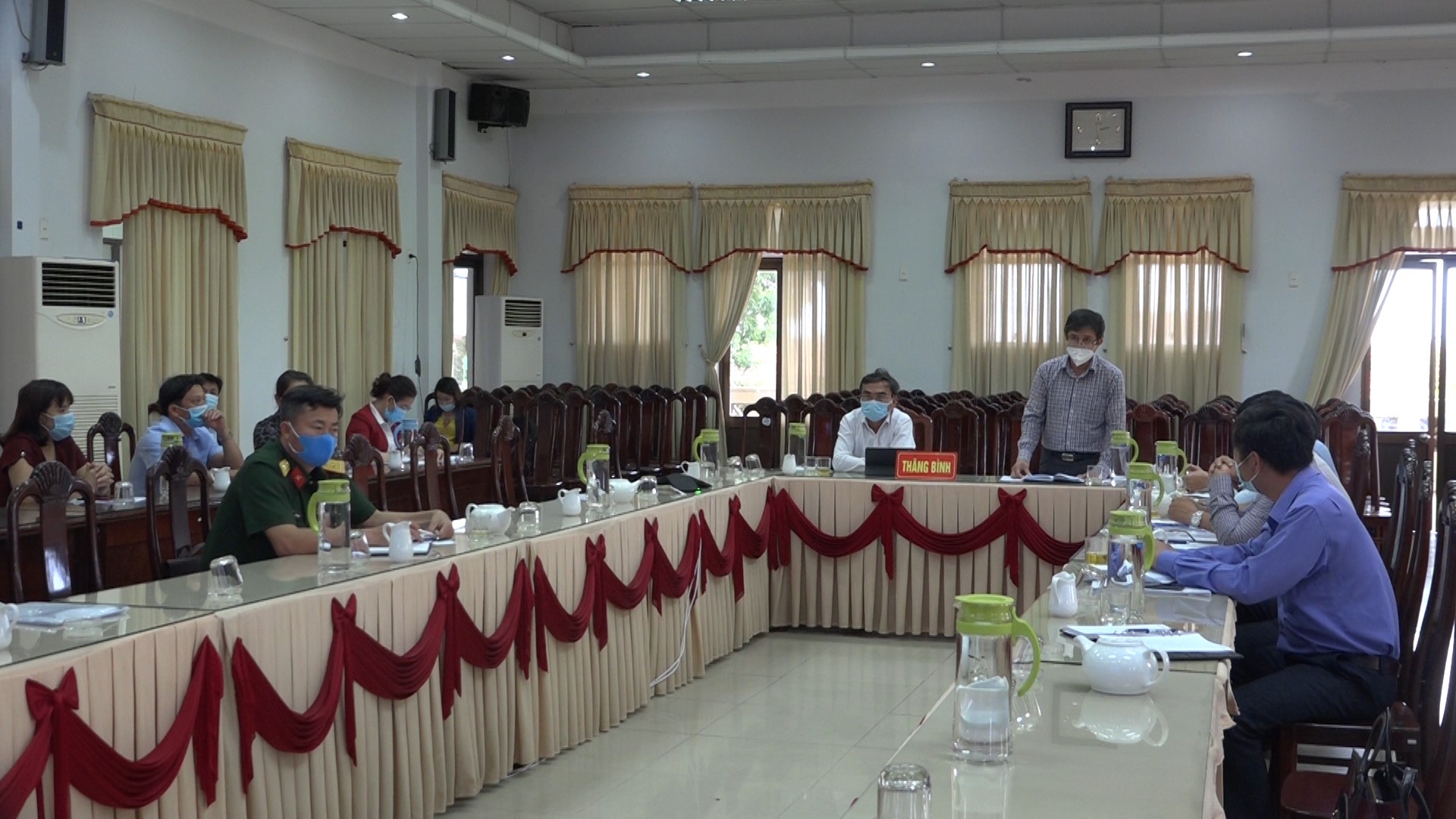 (Ảnh: Ông Võ Văn Hùng- Chủ tịch UBND huyện đang báo cáo với UBND tỉnh về kỳ thi Tốt nghiệp THPT đợt 2)