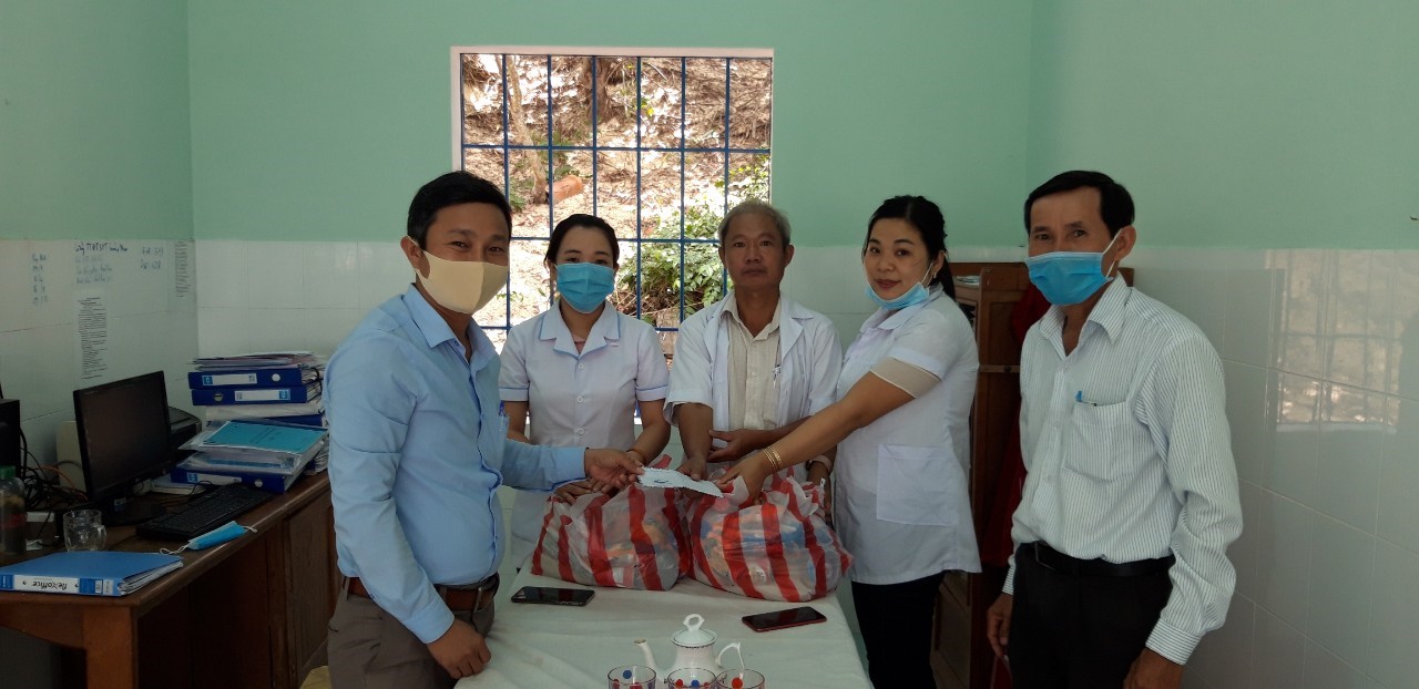 (Ảnh: Trao quà cho Cán bộ và nhân viên trạm y tế)