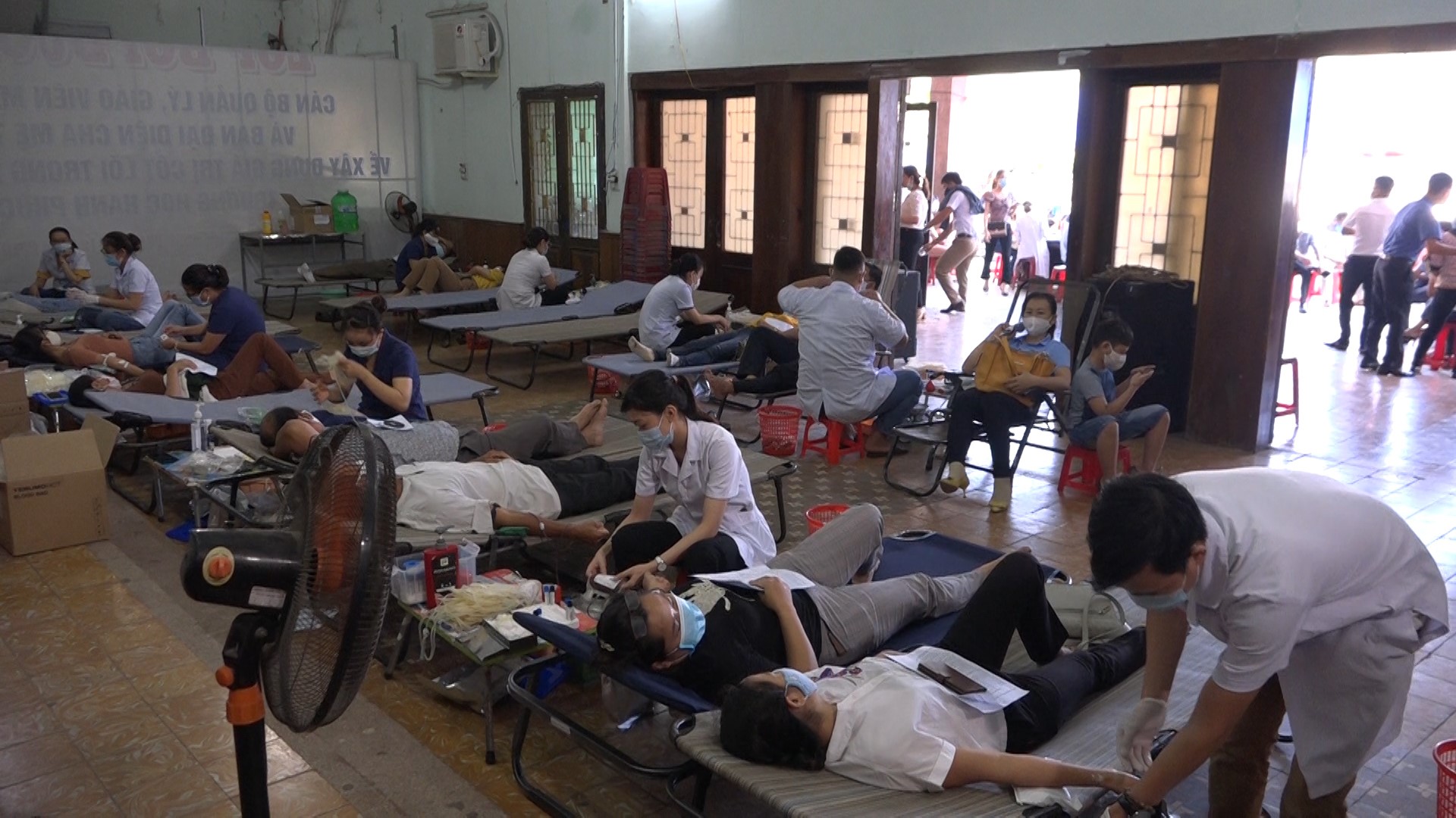 (Đông đảo các tình nguyện viên tham gia hiến mau từ rất sớm)