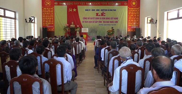 (Ảnh: Đông đảo nhân dân xã Bình Phục đến dự lễ công bố quyết định và đón bằng xếp hạng di tích lịch sử cấp tỉnh Địa đạo Ngọc Sơn)