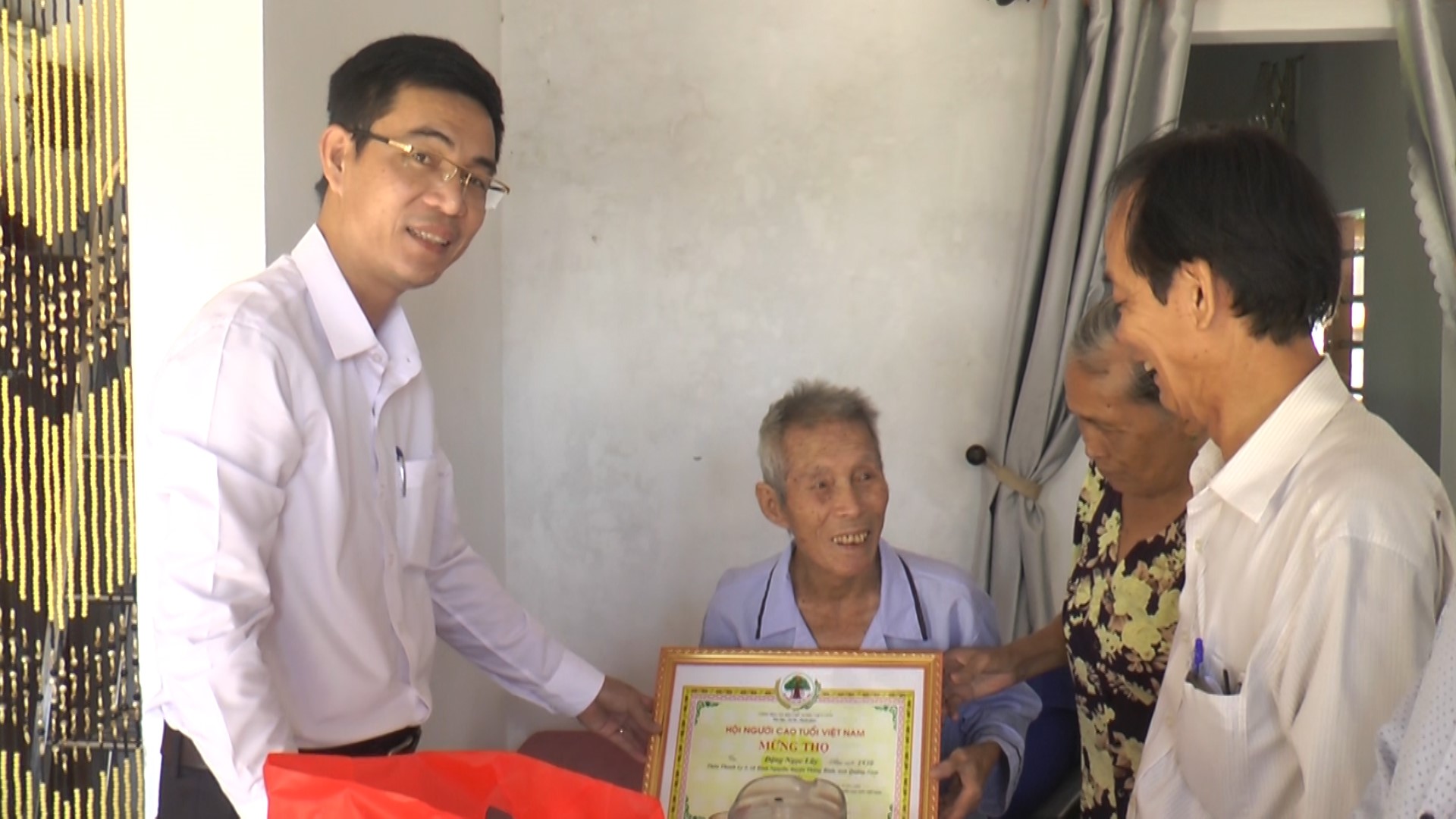 Phó Bí thư Huyện ủy Nguyễn Đức Bình đã đến thăm hai cụ gồm: cụ Phạm Văn Chương ở thôn Thanh Ly 1 và Đặng Ngọc Lũy ở thôn Thanh Ly 2, cả hai cụ năm nay tròn 90 tuổi. Đồng chí Nguyễn Đức Bình đã ân cần hỏi thăm sức khỏe, trao quà và bằng chúc thọ của Trung ương Hội Người cao tuổi Việt Nam cho hai cụ; đồng thời chúc các cụ sống vui, sống khỏe, đóng góp kinh nghiệm vào việc xây dựng và phát triển tại địa phương. Dịp này, ông Nguyễn Đức Bình đã đến thăm và tặng quà Tết Trung thu cho các cháu thiếu nhi đang điều trị bệnh tại Trung tâm Y tế huyện Thăng Bình./.