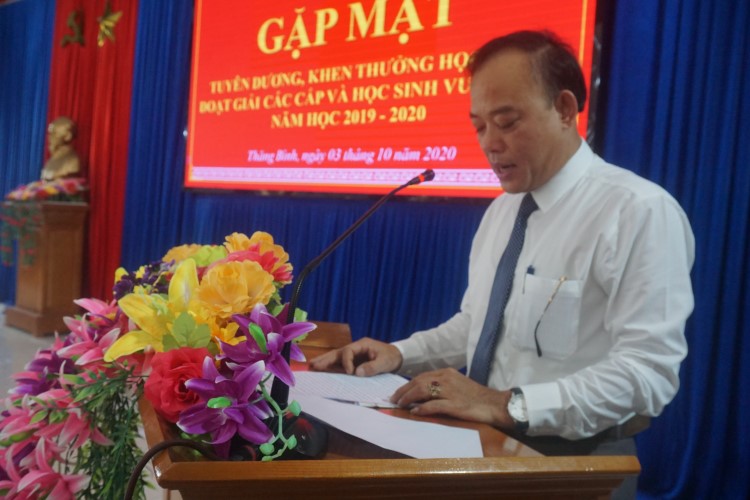 Đến dự và phát biểu chỉ đạo, ông Lê Quang Hạt- Phó Bí thư Thường trực Huyện ủy nhấn mạnh, những thành tích mà các em học sinh của huyện đạt được năm học vừa qua, lãnh đạo huyện Thăng Bình biểu dương tinh thần nỗ lực học tập rèn luyện của các em. Sự chăm lo nuôi dưỡng của các bậc phụ huynh, và các nhà hảo tâm, doanh nghiệp đã đóng góp làm nên thành tích đáng tự hào này. Và những thành tích các em đã được hôm nay vừa là kết quả, vừa là động lực để mỗi thầy cô giáo tiếp tục cống hiến nhiều hơn nữa cho sự nghiệp giáo dục huyện nhà. Ông Lê Quang Hạt cũng tin tưởng học sinh huyện Thăng Bình tiếp tục phát huy truyền thống quê hương anh hùng, cần cù, siêng năng, vượt qua khó khăn để rèn luyện tốt, học tập tốt hơn ở chặng đường tiếp theo.