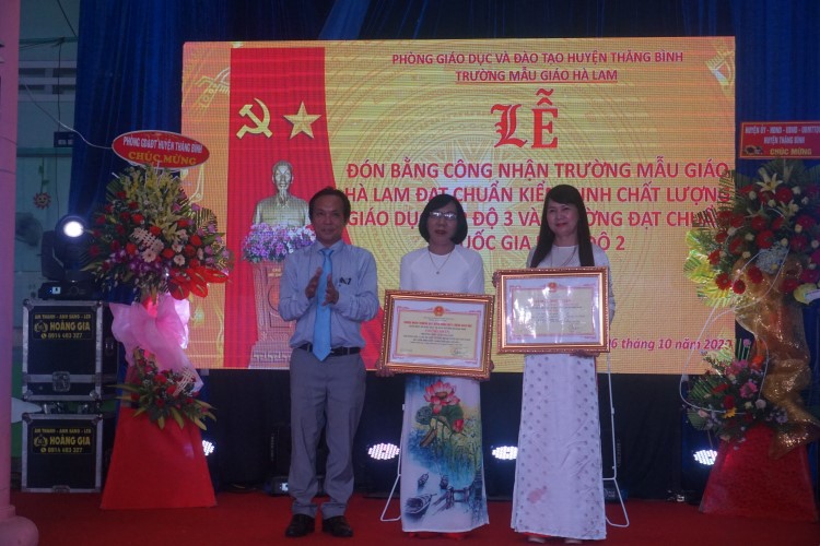 Hiện nay, trường mẫu giáo Hà Lam 14 lớp, 410 cháu. Toàn trường có 100% CB,GV đạt chuẩn theo quy định, có 84,6% trên chuẩn. Mỗi năm có từ 1 đến 3 cán bộ giáo viên đạt danh hiệu chiến sĩ thi đua cấp tỉnh và cơ sở, có nhiều cán bộ giáo viên được các cấp Bộ, UBND tỉnh, UBND huyện tặng bằng khen, giấy khen. Tháng 7/2020 nhà trường vinh dự được Sở Giáo dục & Đào tạo tỉnh Quảng Nam ra Quyết định công nhận trường MG Hà Lam đạt kiểm định chất lượng giáo dục cấp độ 3 và đạt trường chuẩn Quốc gia mức độ II./.