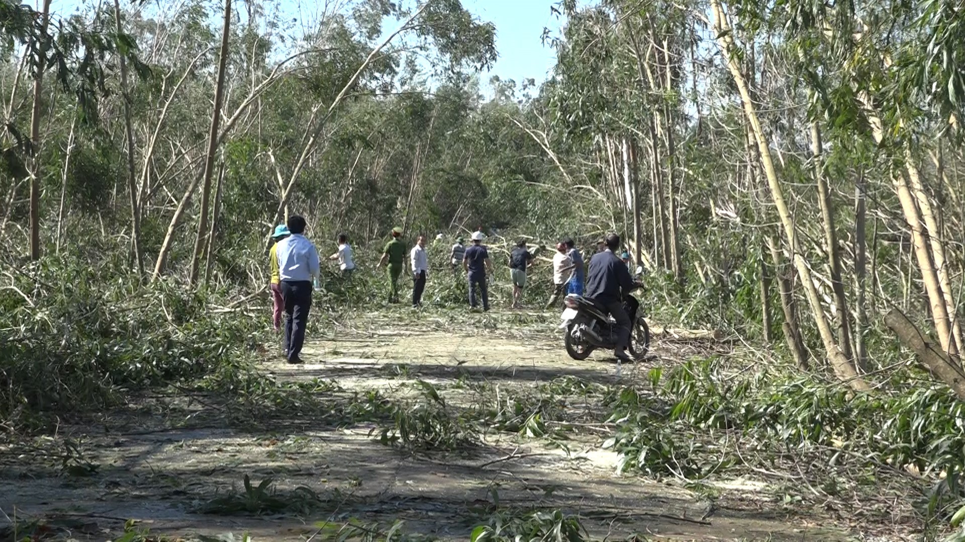 Tại xã Bình Qúy, vào thời điểm lúc 8h sáng, tuyến đường ĐT612 qua địa bàn vẫn chưa được thông tuyến do quá nhiều cây keo ngã đổ 2 bên đường. Ngay sau khi có mặt tại hiện trường, lực lượng làm nhiệm vụ của Công an huyện đã tiến hành cưa cây, phát quang dọn 2 bên đường, đến 9h sáng ngày 29.10 khu vực này mới được thông tuyến trở lại.
