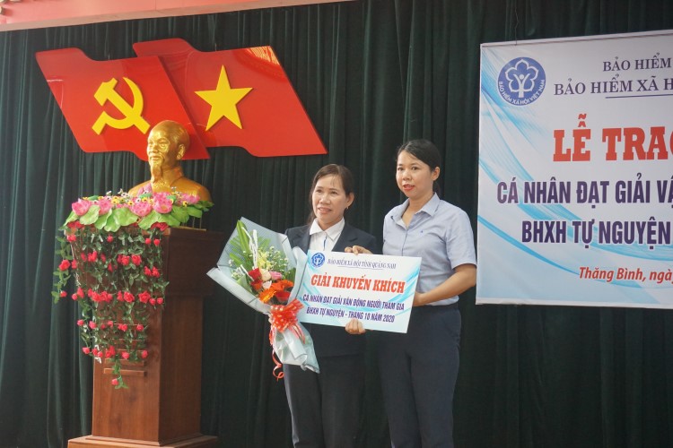 Trước đó, BHXH tỉnh đã phát động đợt thi đua nước rút về Công tác phát triển đối tượng BHXH tự nguyện đợt 1 năm 2020. Theo đó đã có gần 700 đại lý Bảo hiểm ở trên địa bàn tỉnh tham gia. Qua việc phát triển đối tượng tham gia BHXH tự nguyện, BHXH tỉnh đã quyết định trao thưởng cho 13 cá nhân có thành tích trong công tác trên. Trong đó có 1 giải nhất trị giá 10 triệu đồng, 2 giải nhì 7 triệu đồng/giải, 3 giải ba với tiền thưởng trị giá 5 triệu đồng/giải và 7 giải khuyến khích trị giá 1 triệu đồng/giải. Riêng với huyện Thăng Bình đã phát triển được 1.300 đối tượng tham gia và đạt 5 giải gồm 1 giải nhất dành cho chị Nguyễn Thị Thu Hằng- Đại lý thu BH xã Bình Triều; 2 giải nhì là chị Lê Thị Bài - Đại lý thu BH xã Bình Định Bắc và chị Hoàng Thị Thúy Hòa (xã Bình Chánh); chị Trần Thị Mỹ Uyên - Đại lý thu BH xã Bình Giang dành giải ba và 01 giải khuyến khích trị giá 1 triệu đồng đã được trao tặng cho chị Lê Thị Liên- Đại lý thu BH xã Bình Triều./.
