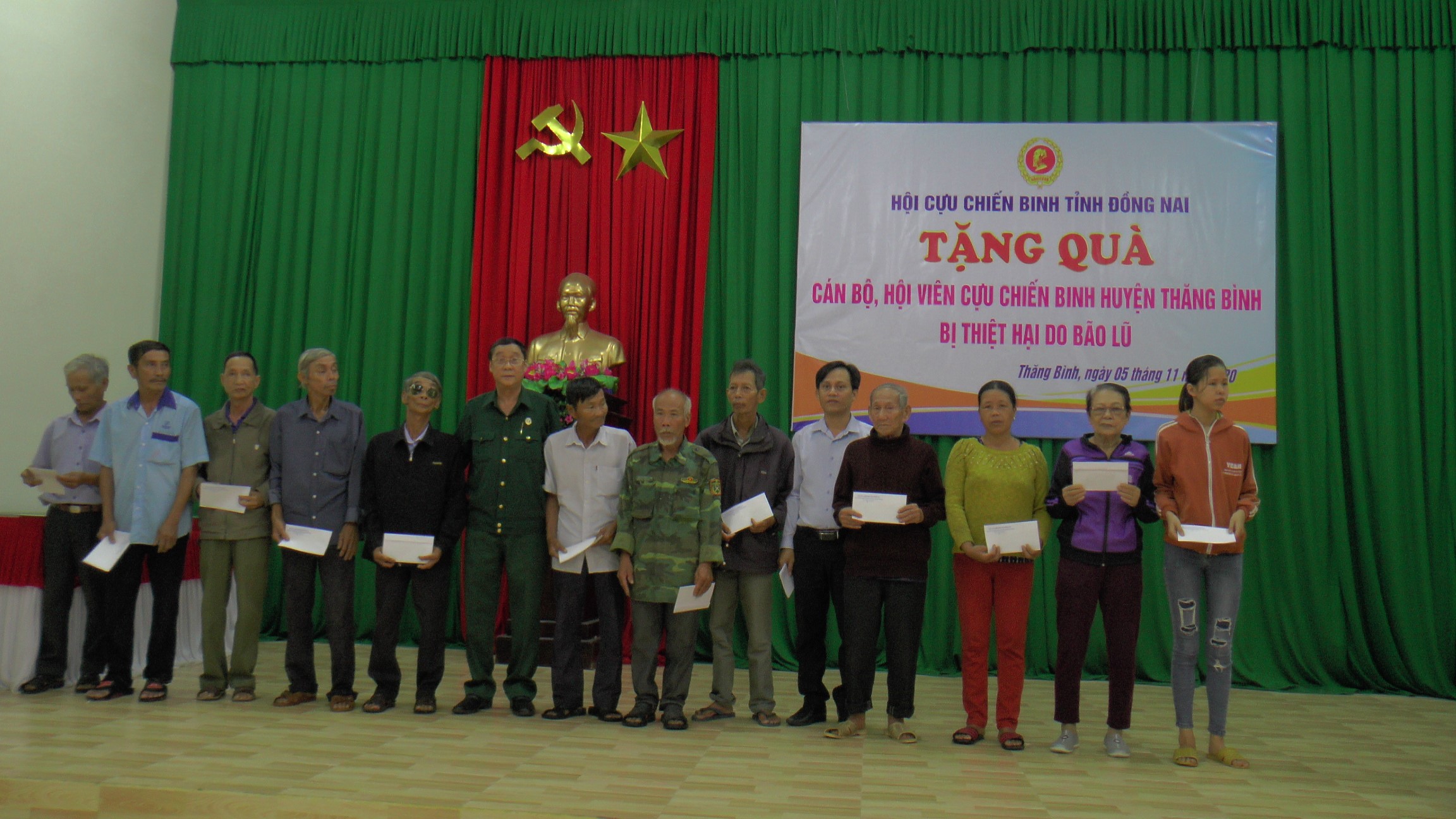 Ông Huỳnh Công Phúc – Phó Chủ tịch Hội CCB tỉnh Đồng Nai cho biết, toàn bộ kinh phí do hội viên CCB, Hội doanh nhân CCB tỉnh Đồng Nai vận động đóng góp. Ngoài huyện Thăng Bình, Hội CCB tỉnh Đồng Nai còn hỗ trợ hội viên CCB trên địa bàn tỉnh Quảng Nam bị thiệt hại do bão số 9 với số tiền khoảng 350 triệu đồng.
