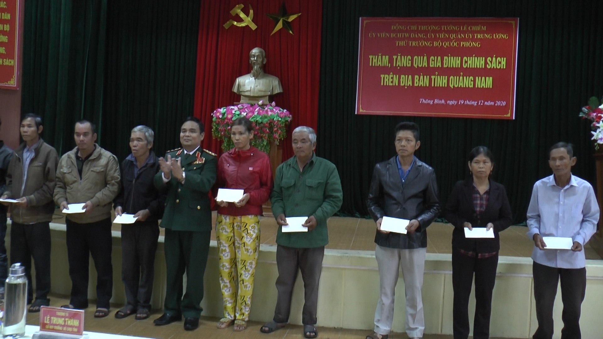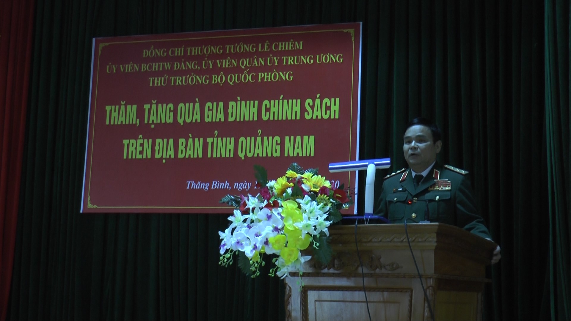 Theo đó, Thượng tướng Lê Chiêm đã trao 50 suất quà, mỗi suất 2 triệu đồng tiền mặt cho các trường hợp khó khăn. Phát biểu tại buổi trao quà, Thượng tướng Lê Chiêm – Thứ trưởng Bộ Quốc phòng đã gửi lời thăm hỏi, động viên các trường hợp sớm vượt qua khó khăn để ổn định cuộc sống. Thượng tướng Lê Chiêm nhấn mạnh, các gia đình chính sách, người có công cách mạng đã đóng góp công sức, trí tuệ, chịu những hy sinh, mất mát trong các cuộc chiến tranh bảo vệ Tổ quốc.
