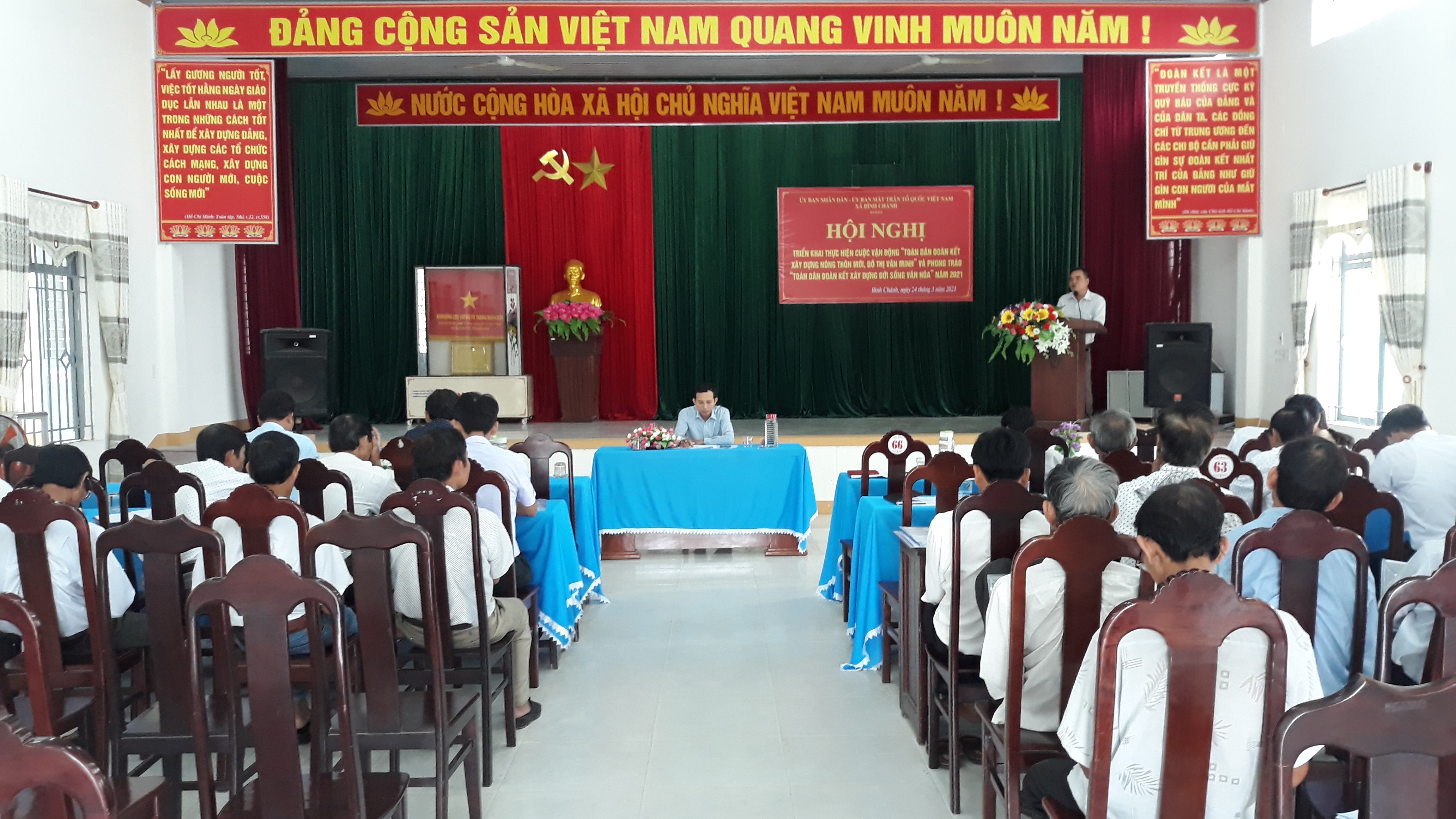 Trong buổi Hội nghị lãnh đạo địa phương, các Ban, Ngành, Hội đoàn thể của xã, lãnh đạo các Trường học và Trạm y tế, các Bí thư chi bộ, Trưởng thôn, Trưởng ban công tác Mặt trận các thôn, cùng đại diện cho 22/22 Hội đồng gia tộc trên địa bàn xã đã được nghe đồng chí Nguyễn Văn Đông –HUV- Phó Chủ tịch UBMTTQVN Huyện đã triển khai nội dung cuộc vận động "Toàn dân đoàn kết dựng nông thôn mới, đô thị văn minh" và chuyên viên Phòng văn hóa – Thông tin Huyện đã triển khai thực hiện phong trào " Toàn dân đoàn kết xây dựng đời sống văn hóa" năm 2021. Đồng thời UBND xã đã quán triệt một số chỉ tiêu của địa phương trong bình xét, đề nghị công nhận danh hiệu " Gia đình văn hóa", "Tộc văn hóa" năm 2021.
