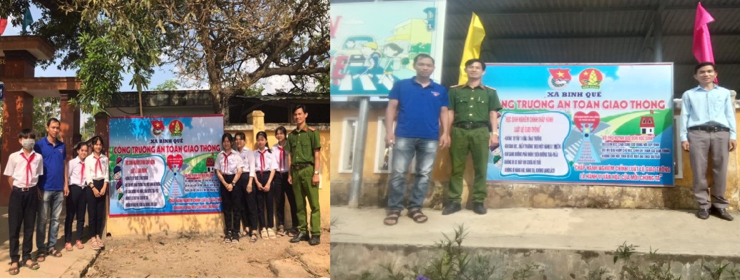(Ảnh: Mô hình cổng trường ATGT tại Trường THCS Nguyễn Tri Phương và Trường TH Lý Tự Trọng xã Bình Quế)