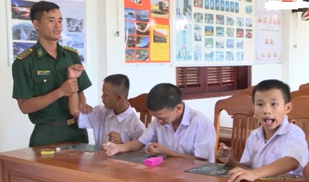 Ban đầu lớp học có 08 em, là những đứa trẻ khuyết tật, thiểu năng, tuy là lớp mở lòng nhưng bên cạnh các em 12, 14 tuổi còn có em đã tròn 25 tuổi. Ngay từ buổi học đầu tiên, người lính biên phòng, người cán bộ hội phụ nữ chính là người thầy đầu tiên hướng các em đến với các con chữ. Bản thân các em bị khuyết tật, thiểu năng nên bên cạnh một số em sáng dạ, việc học con chữ đối với đa số các em càng khó khăn hơn gấp bội so với những đứa trẻ bình thường khác. Các anh, các chị phải kiên nhẫn dạy tiếp cận dần dần từng con chữ, từng cách đánh vần… và chương trình học vì vậy cứ kéo dài, kéo dài theo khả năng nhận thức của các em. Tuy vậy các anh, chị vẫn lập thời khoá biểu cho lớp học, cái thời khoá biểu có thể thay đổi theo khả năng và tiến độ của các em, cái thời khoá biểu ấy dường như là động lực để các anh chị cố gắng truyền đạt được tốt hơn, nhiều hơn những con chữ cho các em.