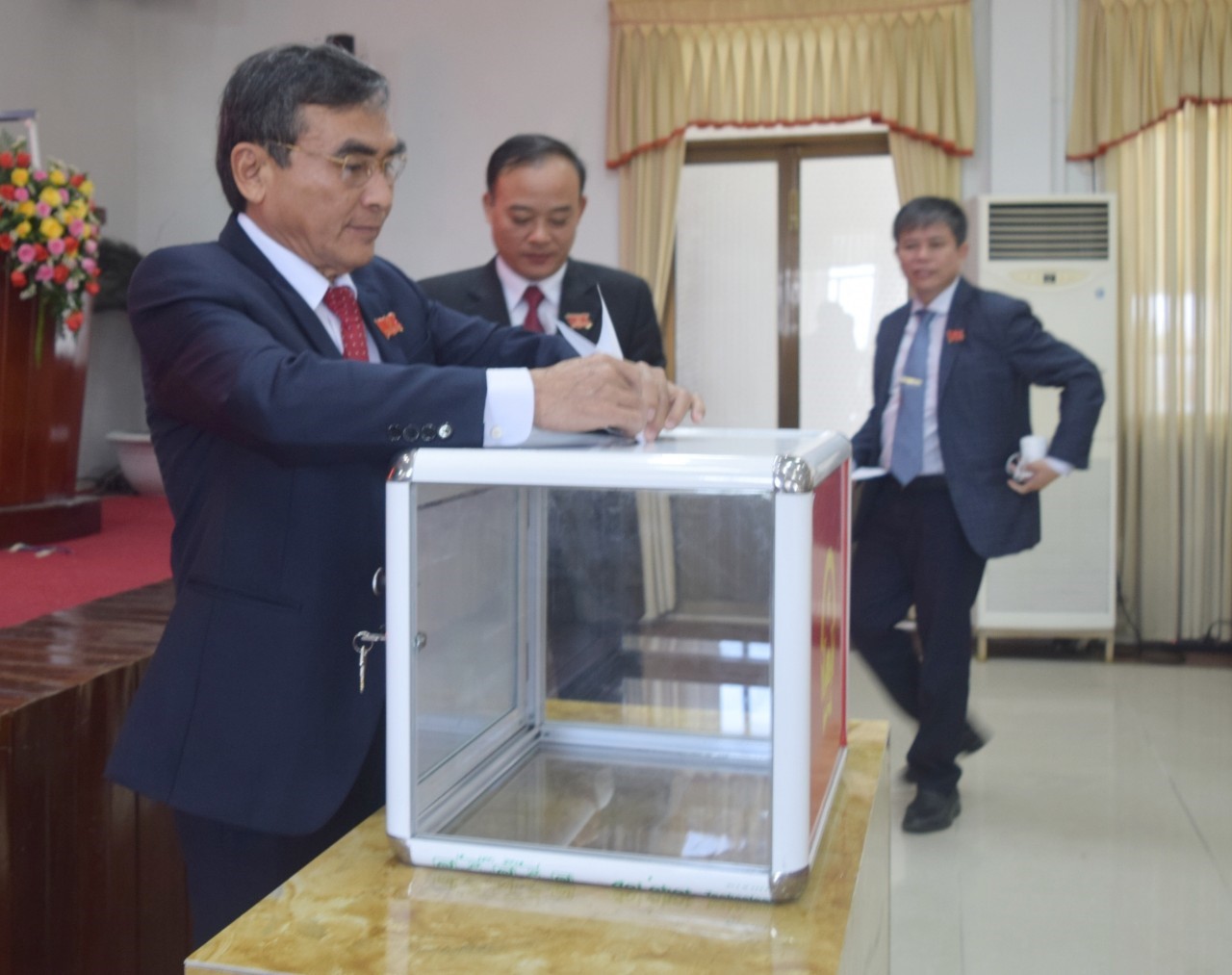 Các đại biểu bỏ phiếu bầu chức danh Chủ tịch HĐND huyện khoá XII