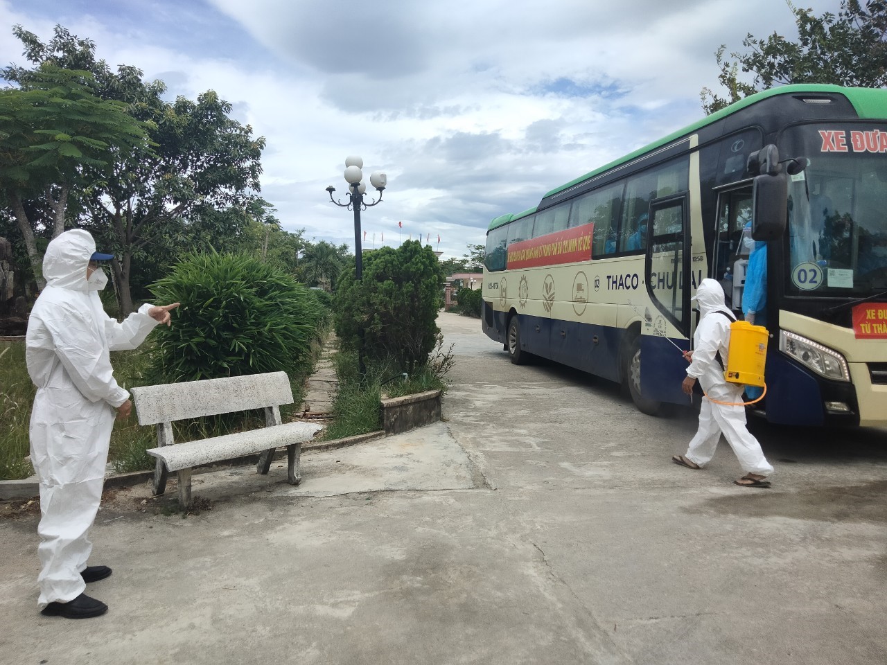 Đúng vào lúc 10h30 phút ngày 25.7, hai chuyến xe của Trường Hải Thaco chở 83 công dân vào khu cách ly tập trung tại Trường THCS Trần Qúy Cáp (xã Bình Qúy). Họ là những công dân đầu tiên ở vùng dịch T.P Hồ Chí Minh được Hội Đồng hương Thăng Bình ưu tiên đưa lên xe về quê.