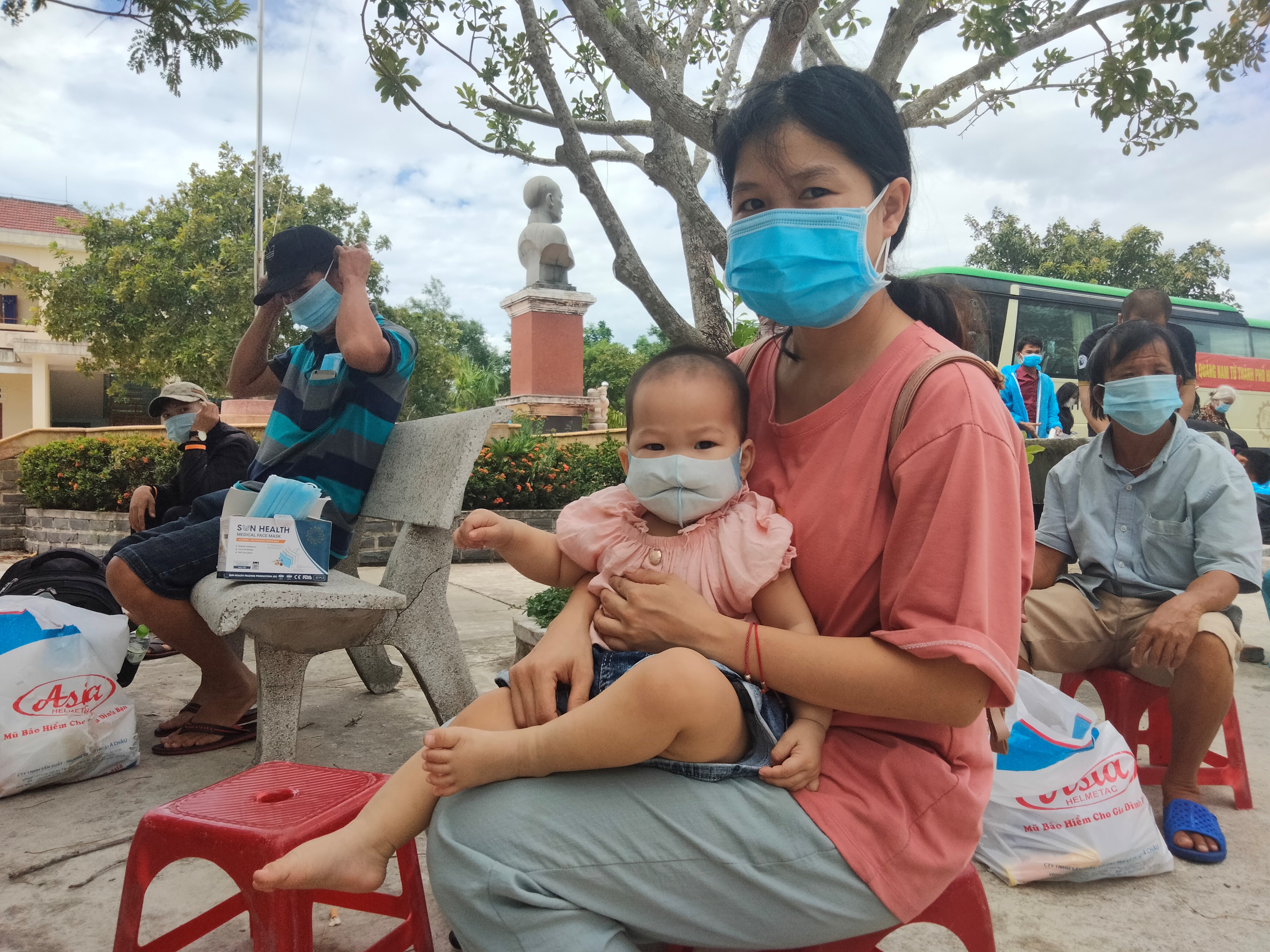 Mệt nhoài trên chuyến xe khách, nhưng khi đặt chân xuống khu cách ly quê nhà, vợ chồng chị Trần Thị Hường (thôn Hà Bình, xã Bình Minh) không dấu được niềm vui và cả những giọt nước mắt hạnh phúc. Cả hai vợ chồng đều là công nhân nhưng, thất nghiệp đã 2 tháng nay. Quay quắt trong căn phòng nhỏ chật chội cùng với đứa con 7 tháng tuổi, dịch bệnh Covid-19 mỗi ngày càng tăng, khiến cuộc sống của vợ chồng khốn khó bội phần. Vợ chồng đăng ký về quê đã được Hội đồng hương Thăng Bình tại thành phố Hồ Chí Minh xét chọn và ưu tiên.