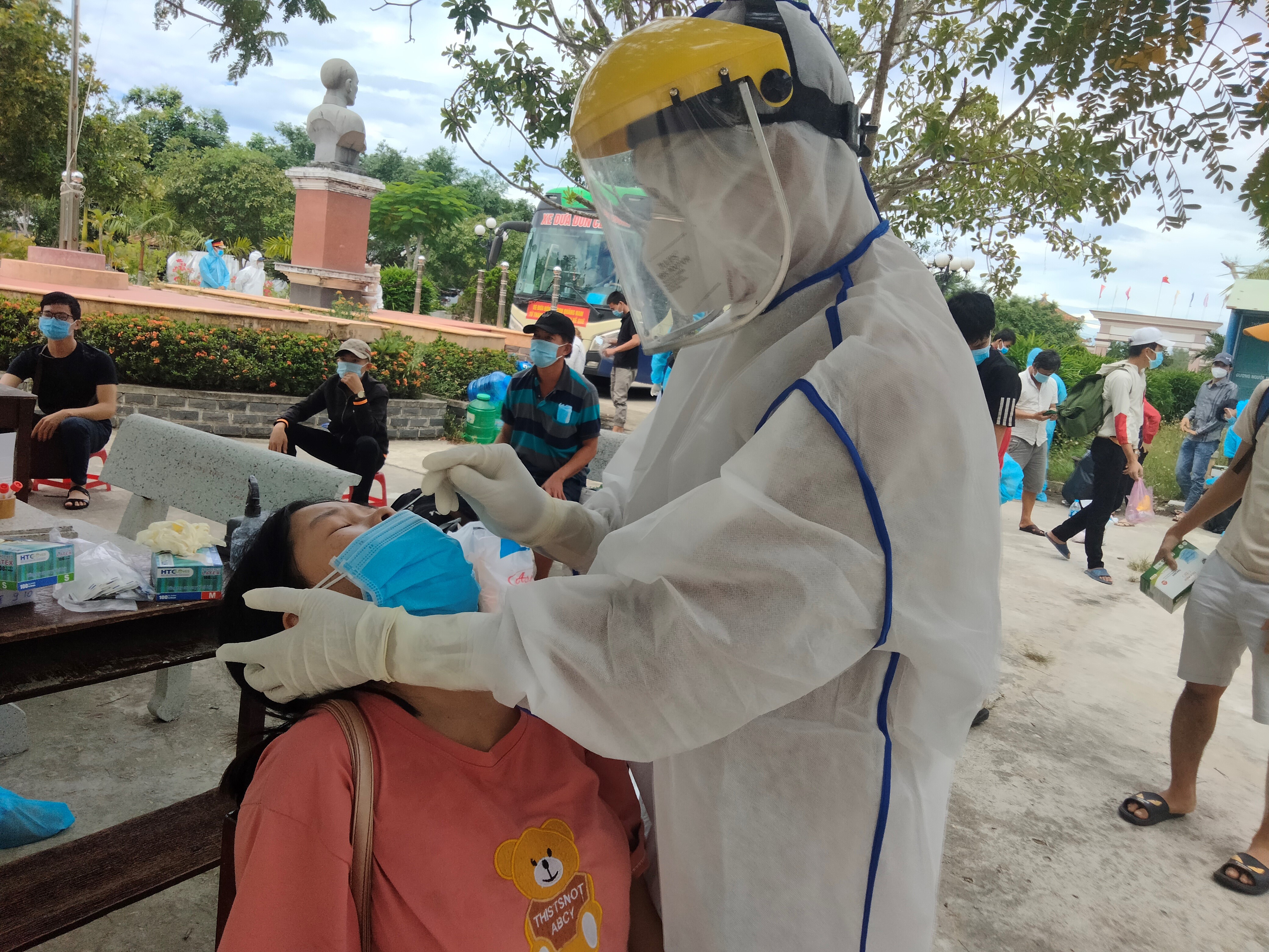 Lực lượng y tế có mặt ngay để thực hiện lấy mẫu cho toàn bộ công dân từ vùng dịch về quê