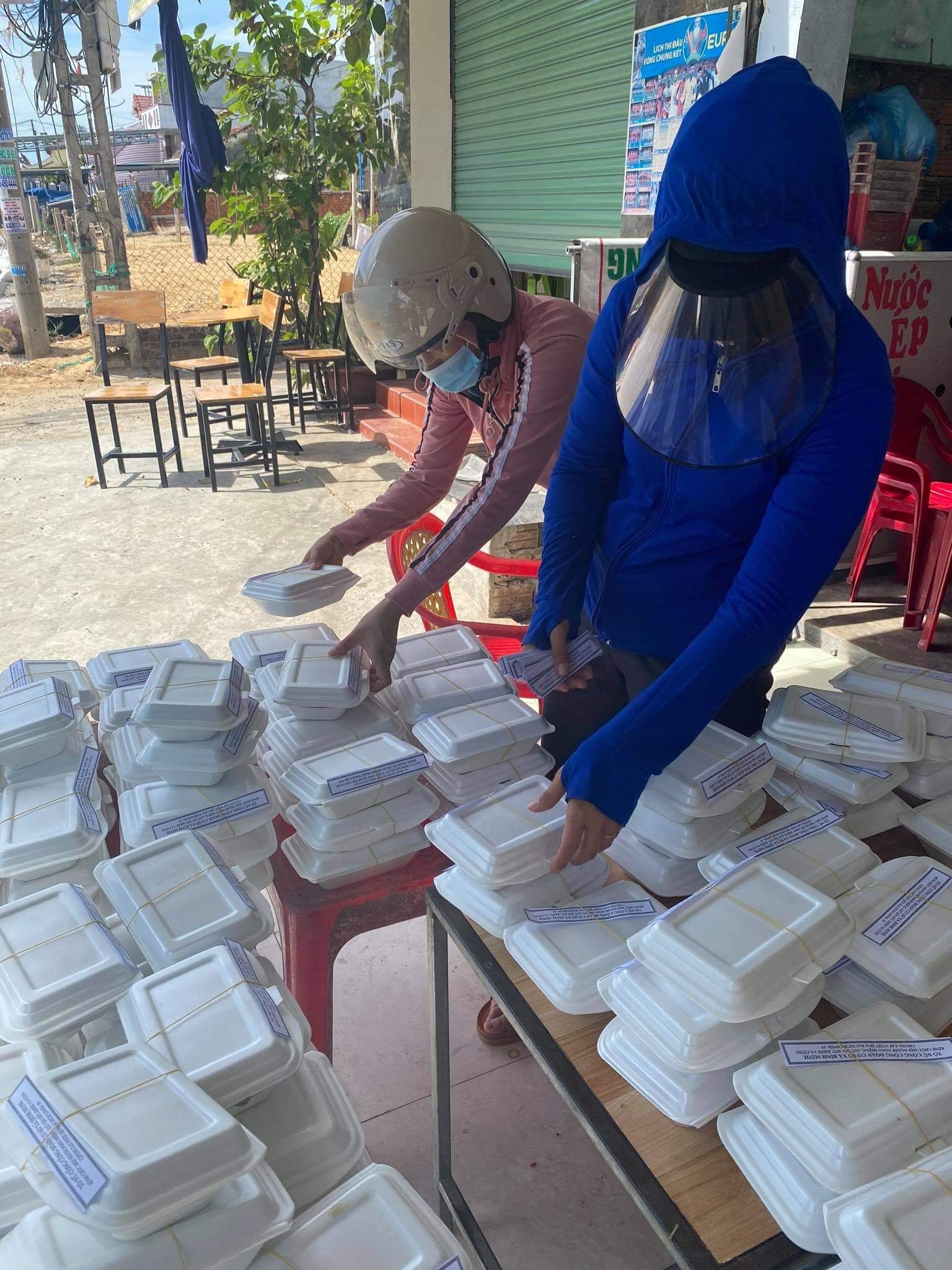 (Ảnh: Các suất cơm đã sẵn sàng để mang đến các điểm cách ly)