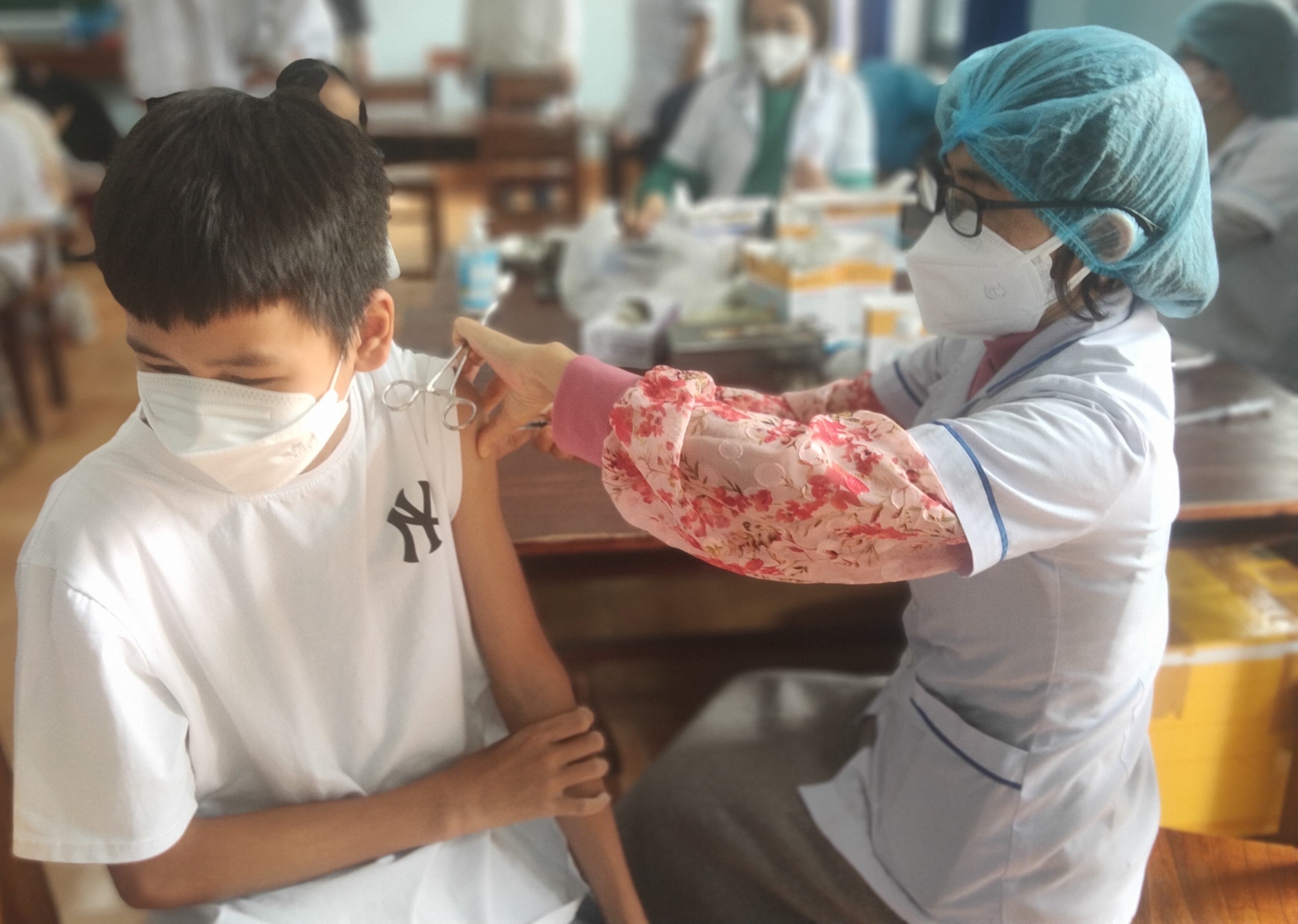 Ngoài ra, nhà trường huy động thêm giáo viên, nhân viên và các lực lượng khác để phối hợp tổ chức tiêm phòng đảm bảo an toàn, hiệu quả.
