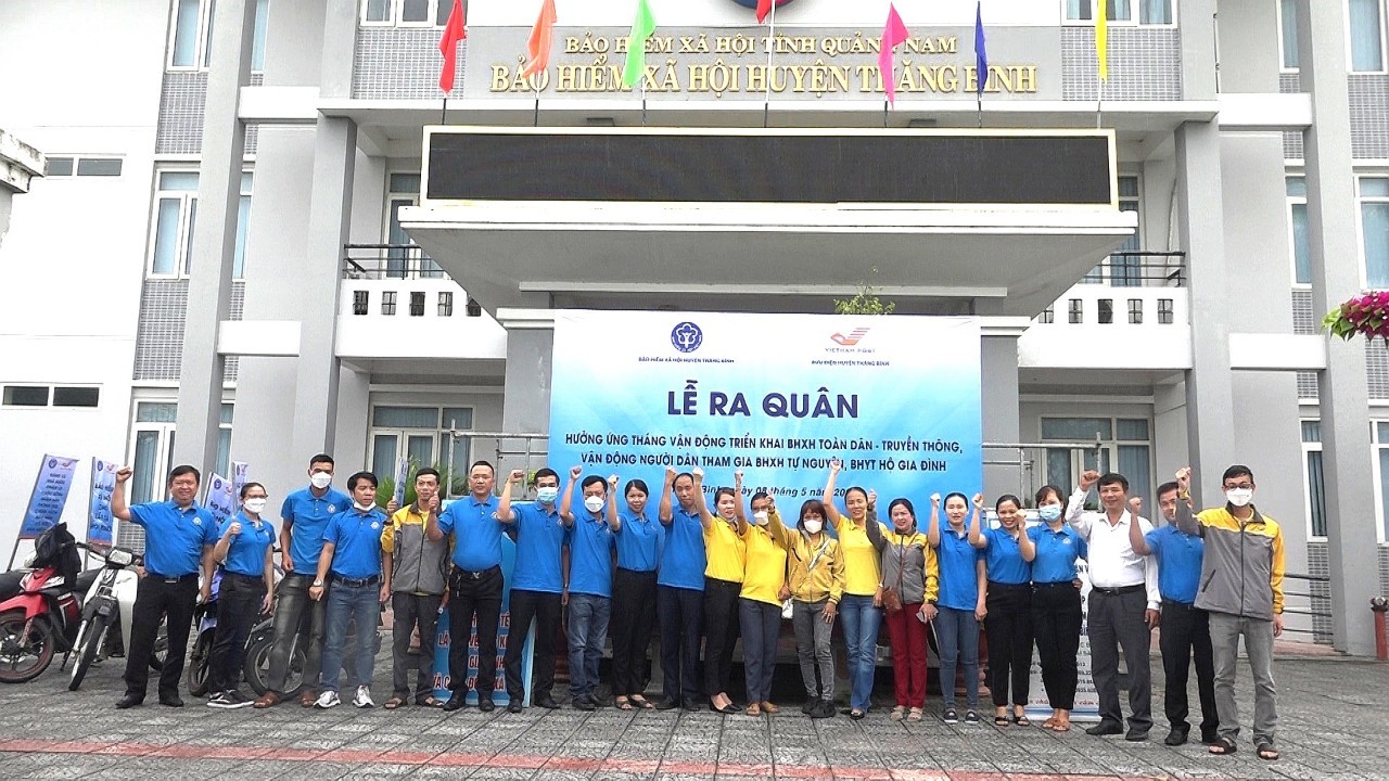 Lễ ra quân được thực hiện dưới 2 hình thức: trực tuyến và truyền thông lưu động. Trong ngày ra quân, BHXH huyện và Bưu điện huyện đã vận động và phát triển thêm được 42 người tham gia BHXH tự nguyện. Theo thống kê của BHXH huyện Thăng Bình, đến thời điểm hiện nay, toàn huyện có hơn 2900 người tham gia BHXH tự nguyện và gần 160.000 người tham gia BHYT.