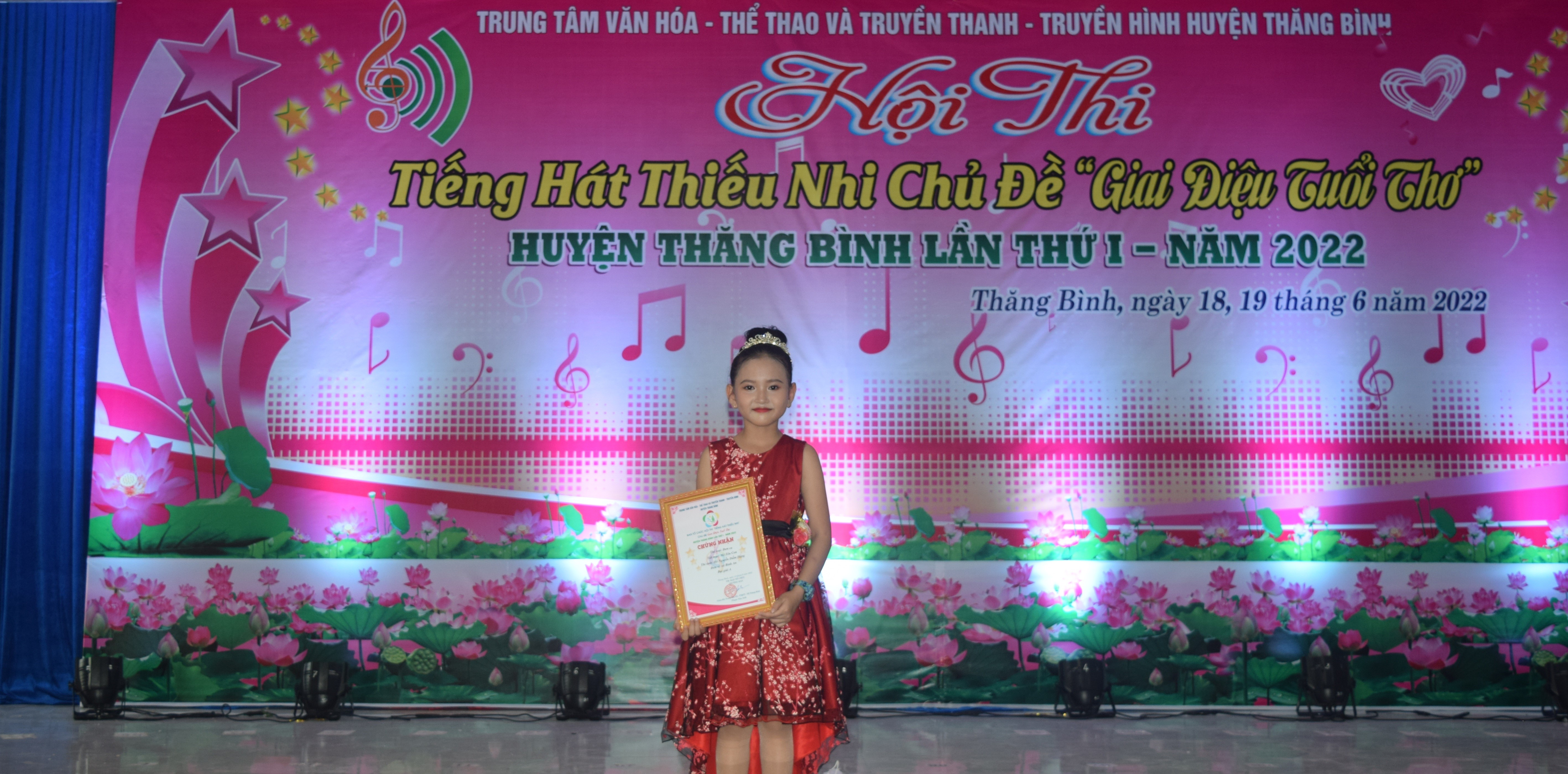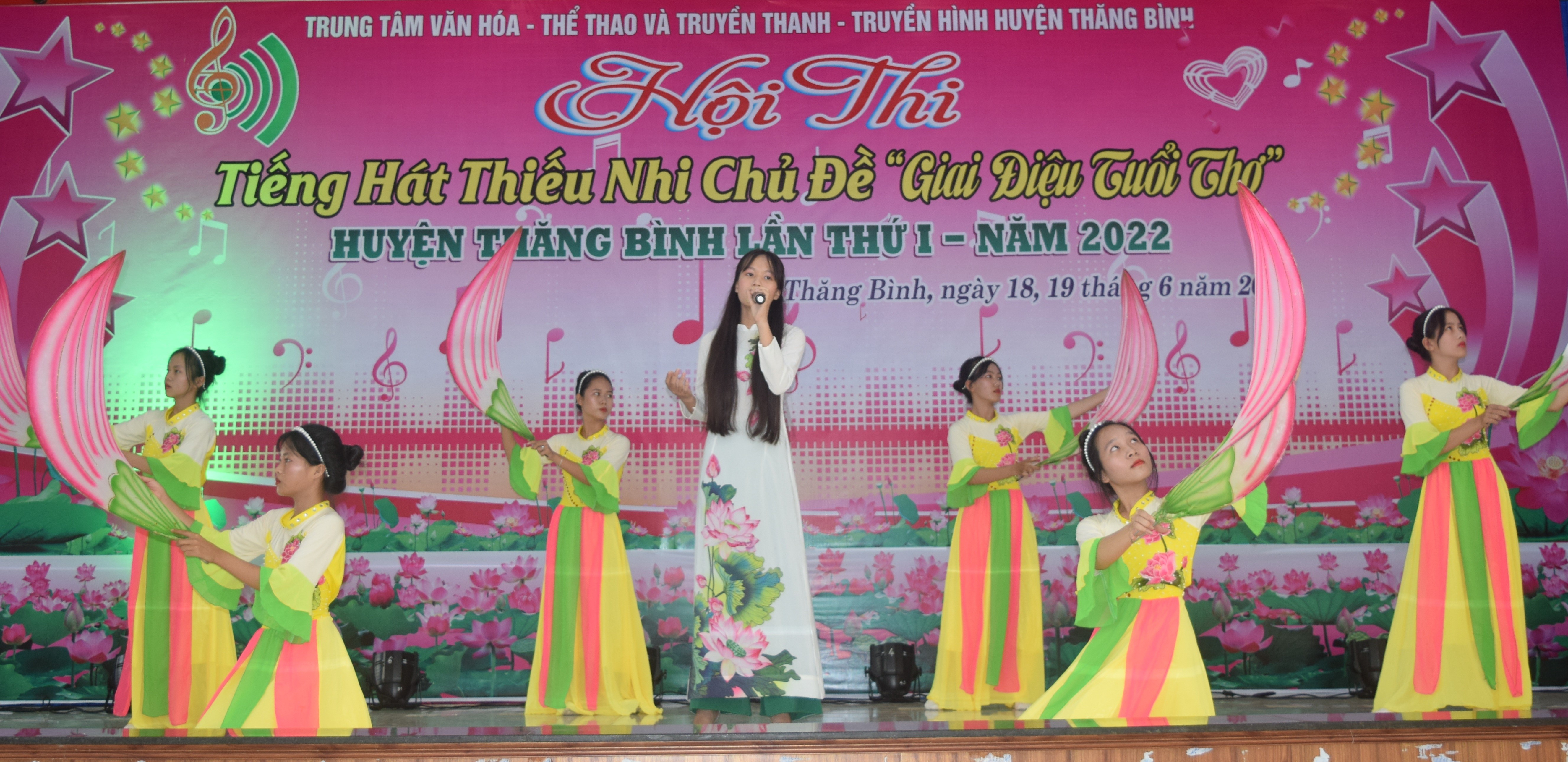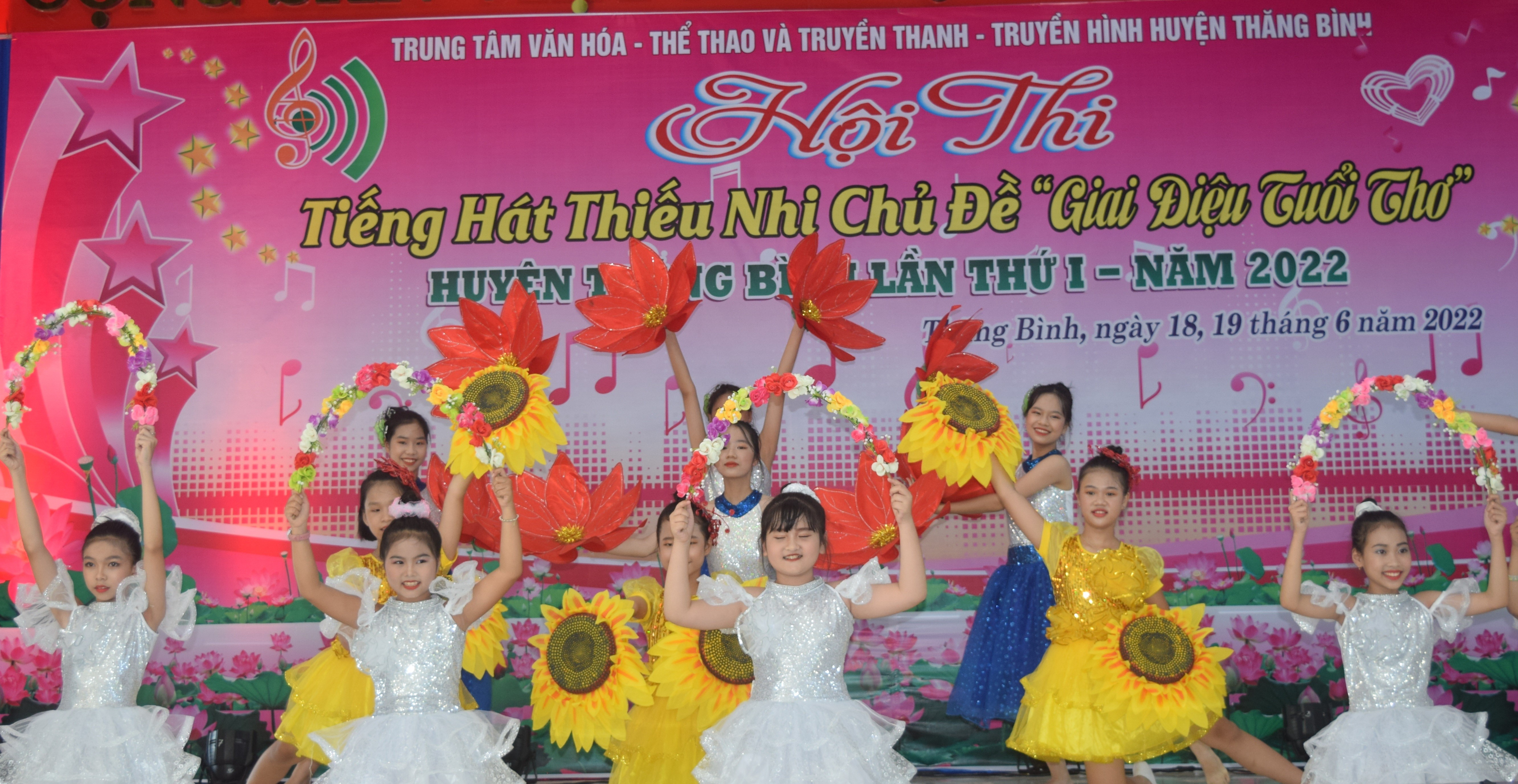 Tham gia hội thi có gần 400 em thiếu nhi đến từ 16 đơn vị xã, thị trấn trên địa bàn huyện Thăng Bình. Các đơn vị tham gia dự thi ở 5 thể loại: đơn ca, song ca, tam ca, tốp ca và hát múa với các nội dung hát múa phù hợp với lứa tuổi thiếu nhi. Sau 2 ngày tranh tài sôi nổi, đơn vị thị trấn Hà Lam xuất sắc giành giải nhất toàn đoàn với 3 giải A, xã Bình Minh xếp ở vị trí thứ 2 với 2 giải A và 1 giải B, vị trí thứ 3 toàn đoàn thuộc về đơn vị xã Bình An, 2 đơn vị gồm Bình Chánh và Bình Trung đoạt giải khuyến khích toàn đoàn.