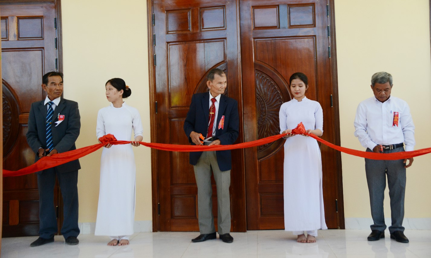 Ban quản trị làng Cẩm Phú cắt băng khánh thành nhà thờ vị Tiền hiền làng.