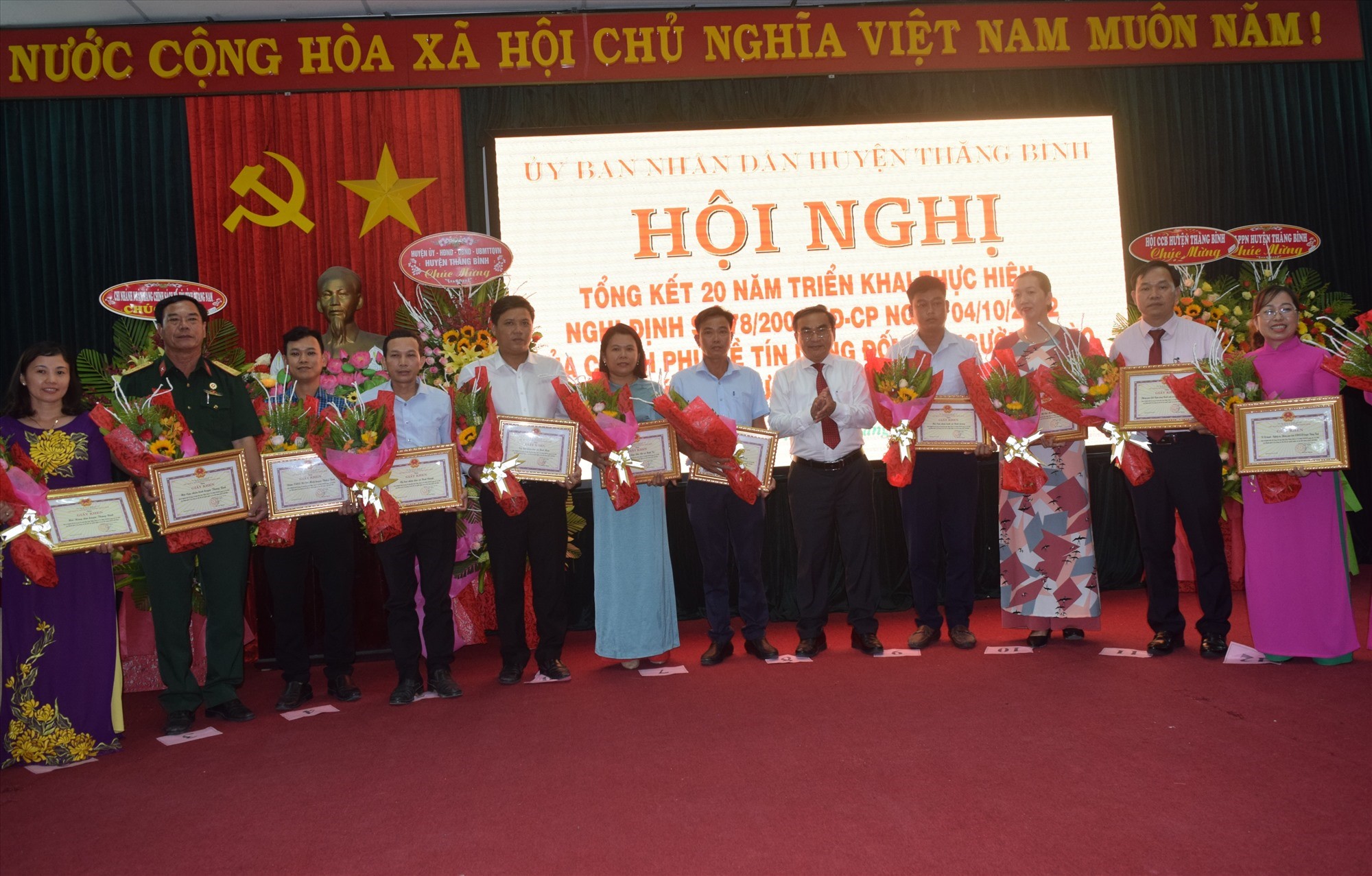 Bí thư Huyện ủy Phan Công Vỹ khen thưởng cho các tập thể, cá nhân đã có thành tích tốt trong 20 năm triển khai thực hiện Nghị định 78.