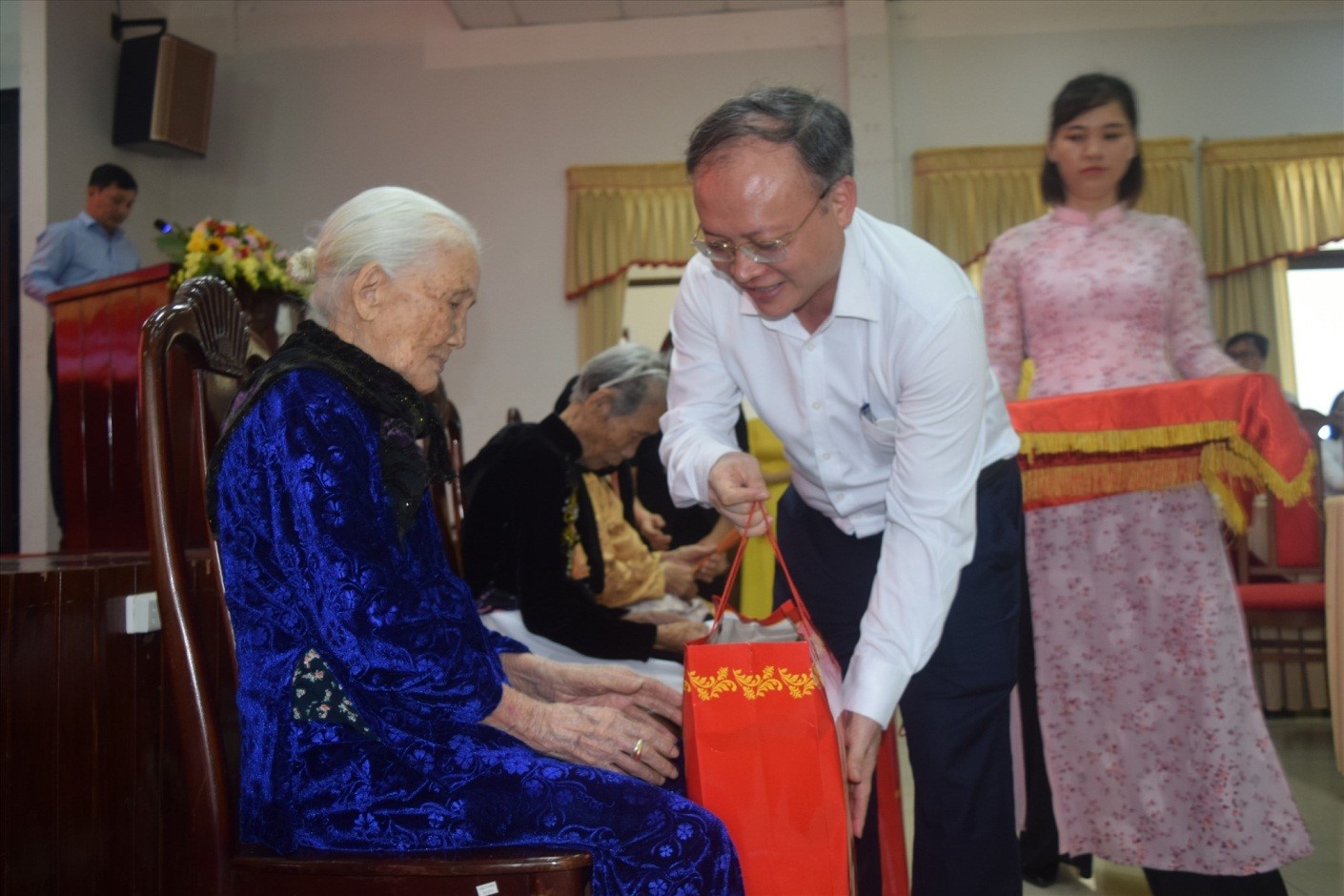 Ông Lê Trọng Thụ - Bí thư Huyện ủy, Chủ tịch UBND huyện Đông Sơn tặng quà cho Mẹ VNAH