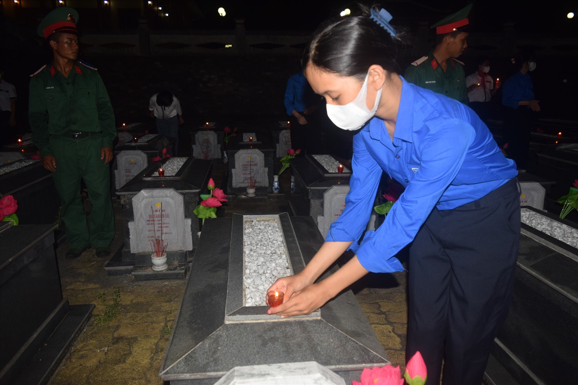 Ngay sau phần dâng hương, 256 ngọn nến đã được các bạn đoàn viên thanh niên thắp lên sưởi ấm anh linh các anh hùng liệt sĩ tại Đền Tưởng niệm các Anh hùng liệt sĩ huyện. Những bạn trẻ đã thành kính thắp từng ngọn nến, dâng từng nén hương thơm trên mỗi mộ phần của các liệt sĩ dù có tên tuổi hay chưa thể biết tên.