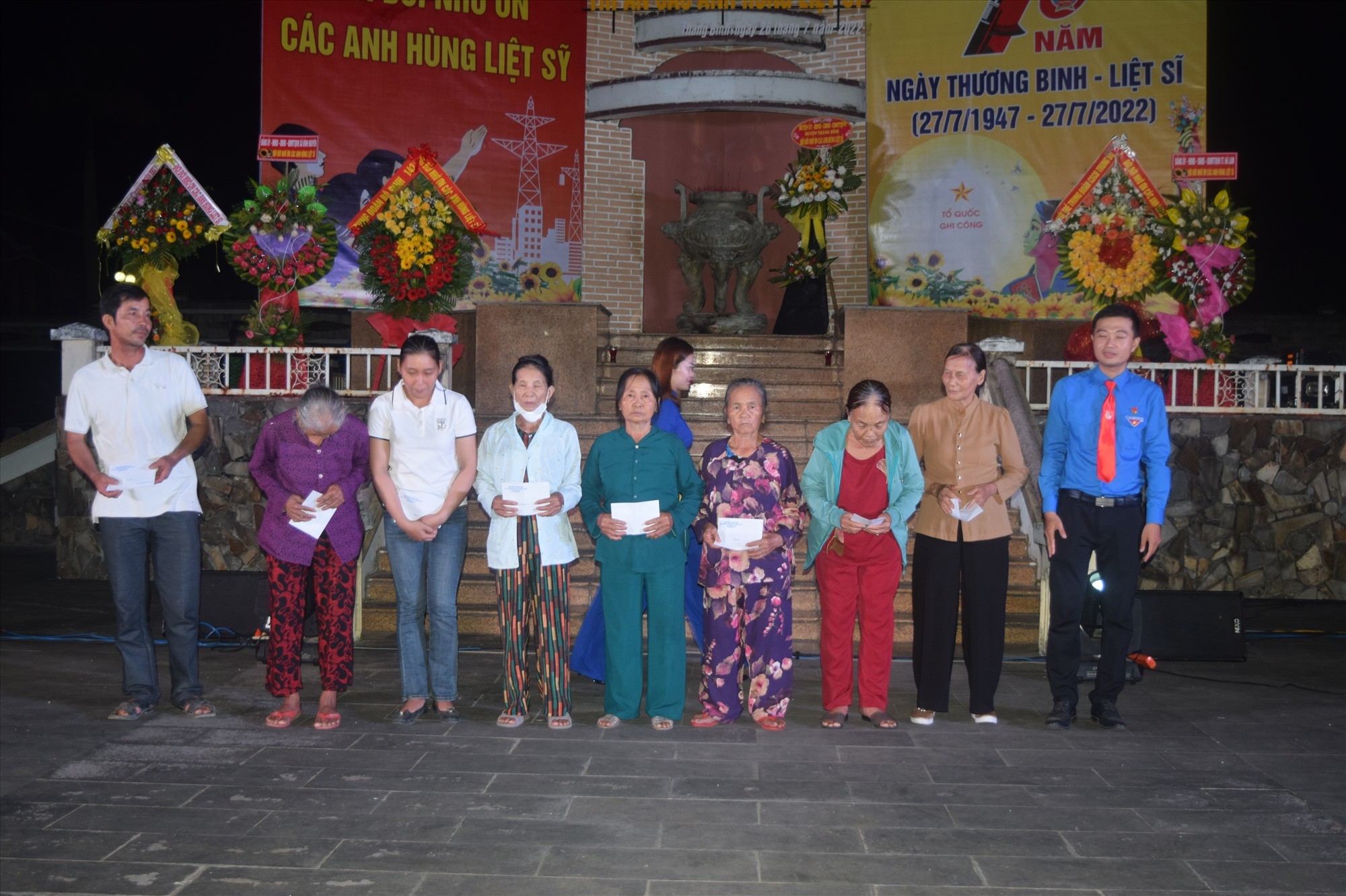 Cùng với chương trình Thắp nến tri ân, Huyện đoàn và các ngành đoàn thể đã trao 24 suất quà và 1 sổ tiết kiệm cho các gia đình chính sách, người có công trên địa bàn.