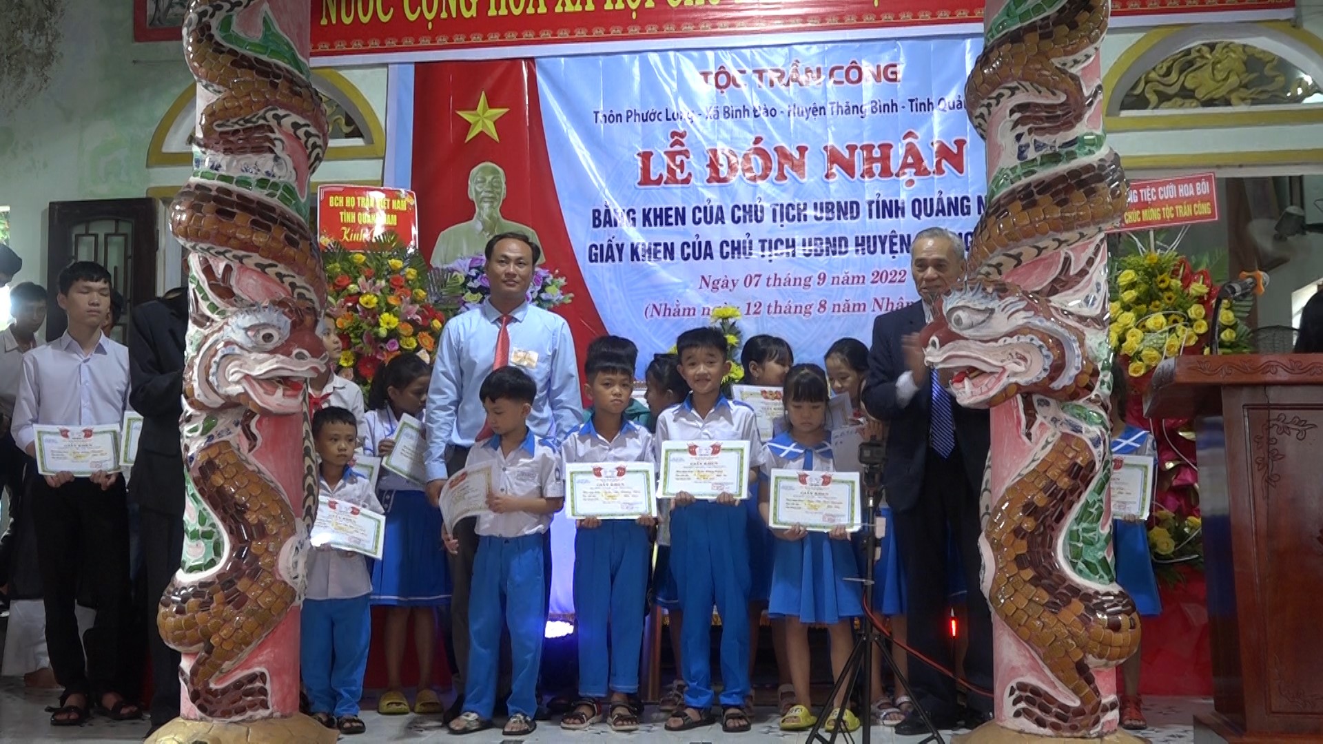 Dịp này, tộc Trần Công còn trao thưởng cho 82 học sinh có thành tích học tập khá giỏi năm học 2021-2022 và tổ chức mừng thọ cho 10 cụ cao niên trong tộc.