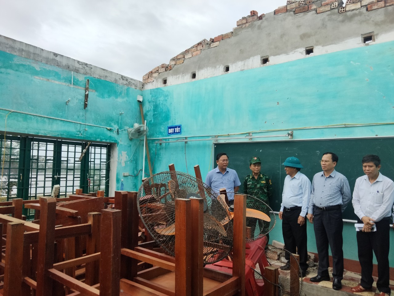 Chủ tịch UBND tỉnh Lê Trí Thanh cùng lãnh đạo huyện Thăng Bình kiểm tra mực độ thiệt hại tại trường