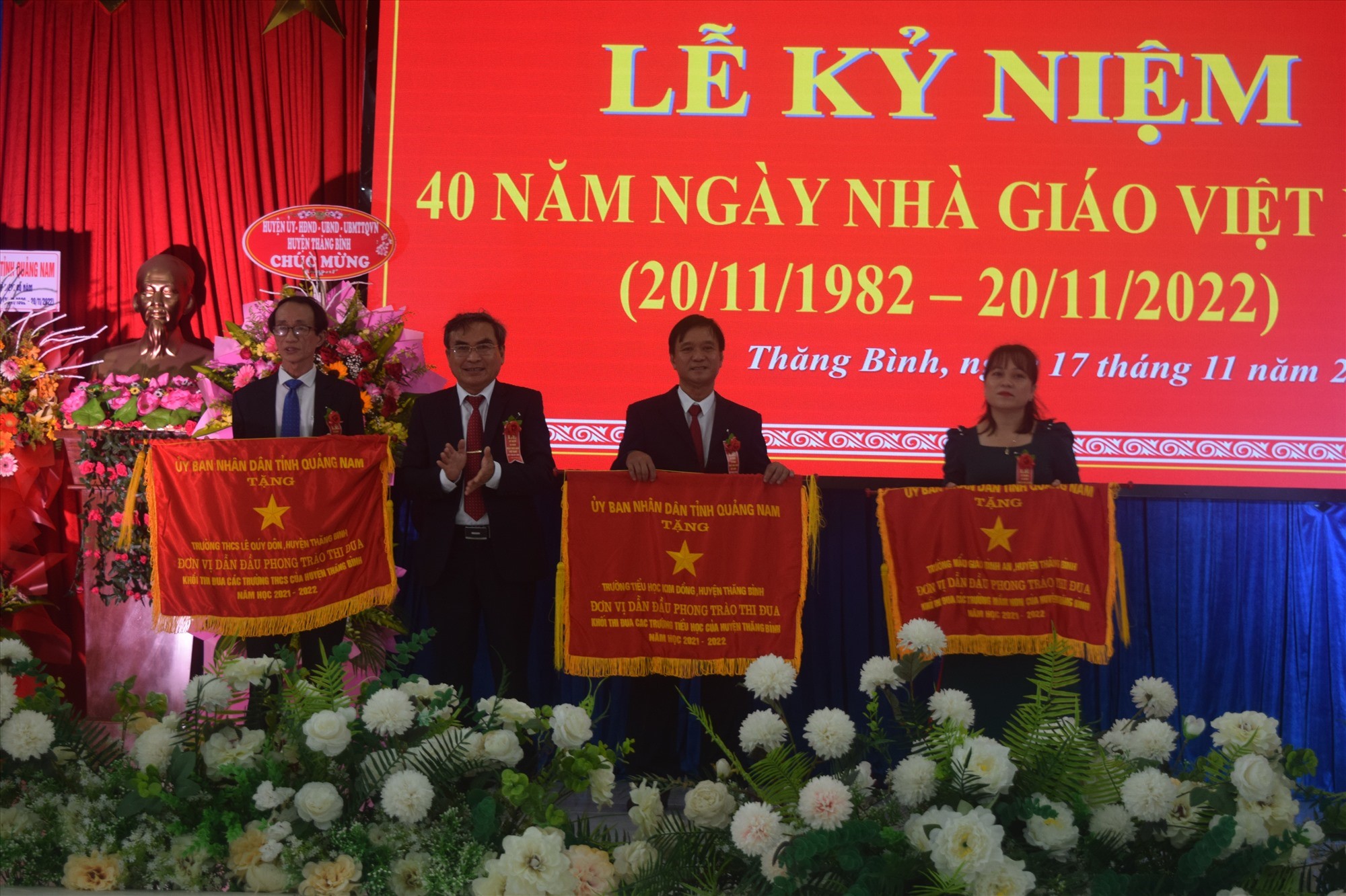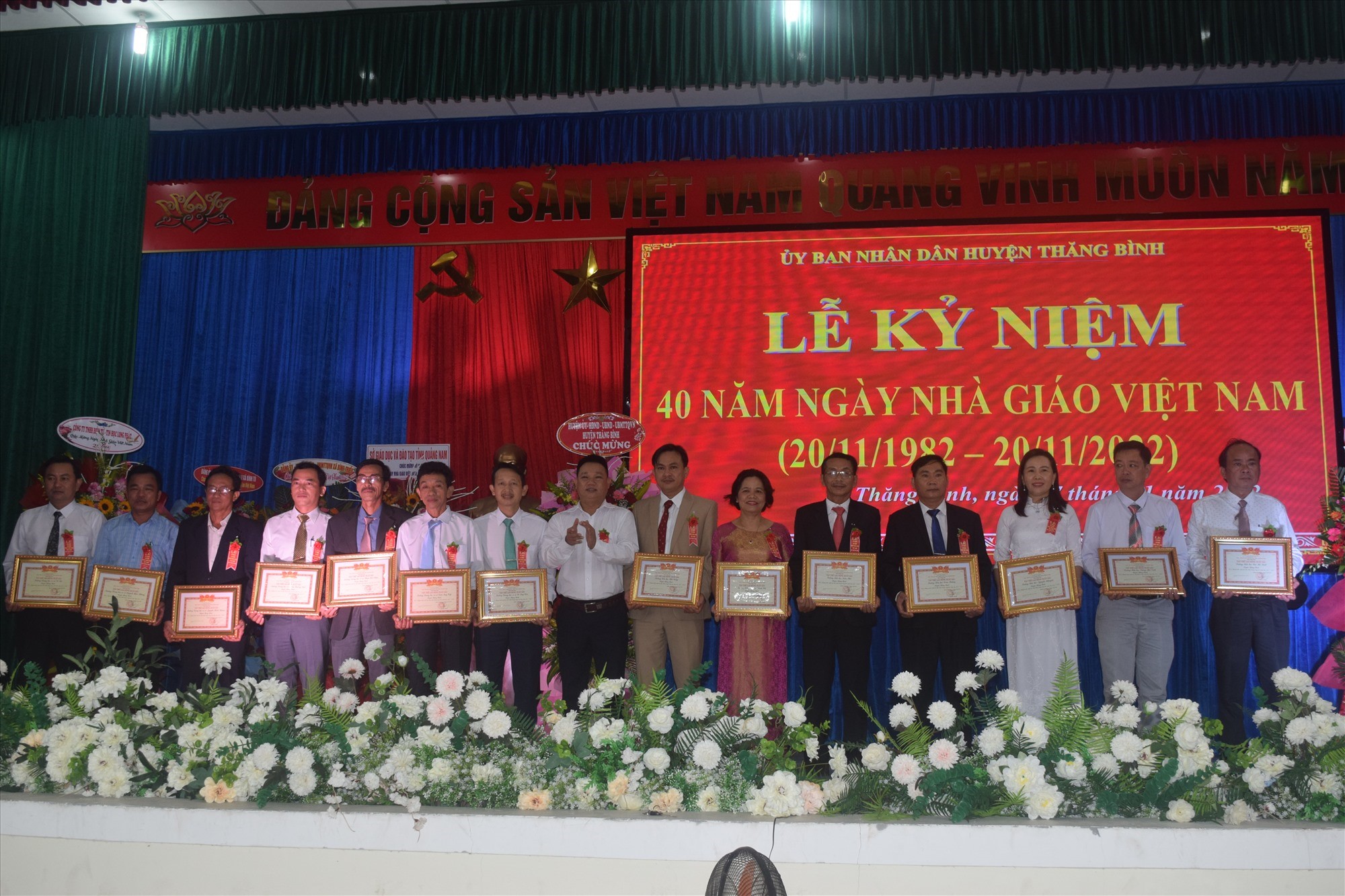 Dịp này, huyện Thăng Bình đã tặng Cờ thi đua của UBND tỉnh Quảng Nam cho 3 tập thể; 28 tập thể lao động xuất sắc; 3 tập thể và 7 cá nhân được tặng bằng khen của Chủ tịch UBND tỉnh; 2 cá nhân được tặng Bằng khen của Bộ GD-ĐT; và nhiều danh hiệu cao quý khác của ngành, của huyện Thăng Bình.