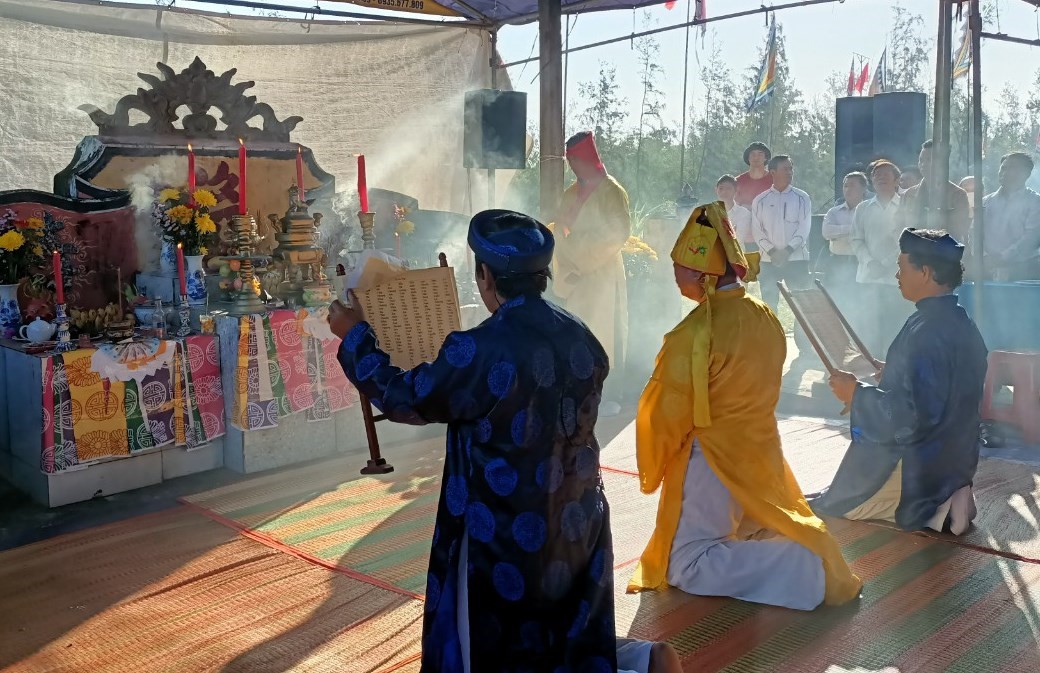 Ngay từ sáng sớm ngày 5/2, các cụ cao niên trong trang phục áo dài truyền thống đã về Tiền hiền của thôn Tân An để làm lễ cúng. Nghi lễ lần này gồm Lễ giổ Tổ Hiền, Lễ cầu ngư kết hợp với hát Bả trạo. Đúng 7h sáng, trong tiếng trống, tiếng chiêng rộn ràng, các cụ cao niên đã thực hiện các nghi thức cúng với lòng thành kính, cầu mùa biển mới bình an, nhiều may mắn, tôm cá đầy khoang và dân làng no ấm, bình yên.