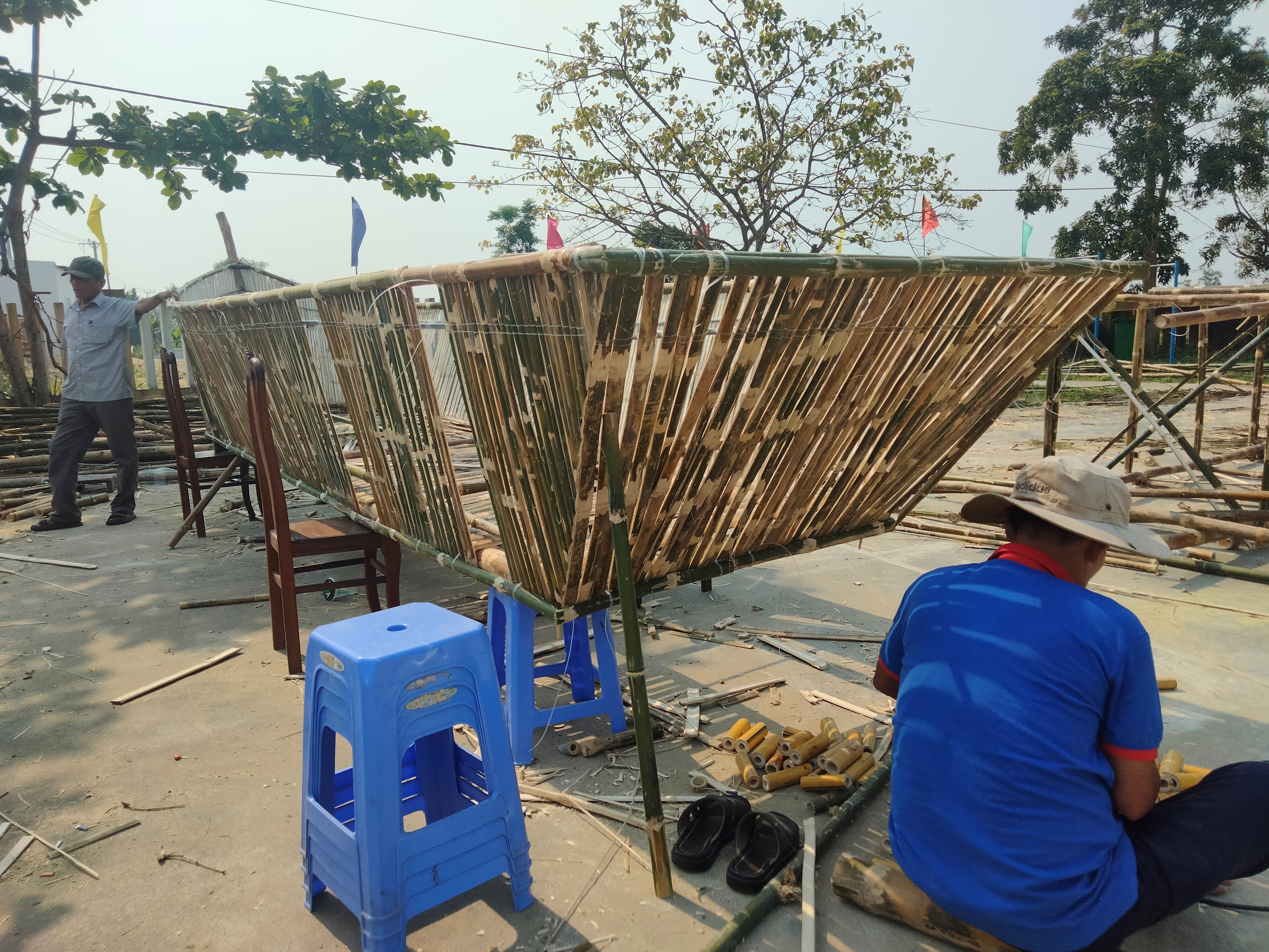 Sau gần 15 ngày cận lực, huy động, trại biển của thôn Nam Hà xã Bình Dương đã tượng hình. Điểm nhấn của trại là những chiếc thuyền. Công cụ này là đặc trưng của người dân vùng biển mỗi khi vươn khơi xa. Ông Mai Xuân Tư- Bí thư Chi bộ Nam Hà cho hay: Dự kiến kinh phí làm trại hơn 50 triệu đồng, trong đó nhà nước hỗ trợ tầm 15 triệu đồng, còn lại thôn thực hiện xã hội hoá. Những ngày qua, ai nấy trong thôn cũng háo hức tham gia làm trại, góp tre, góp sức để hoàn thiện các khâu.