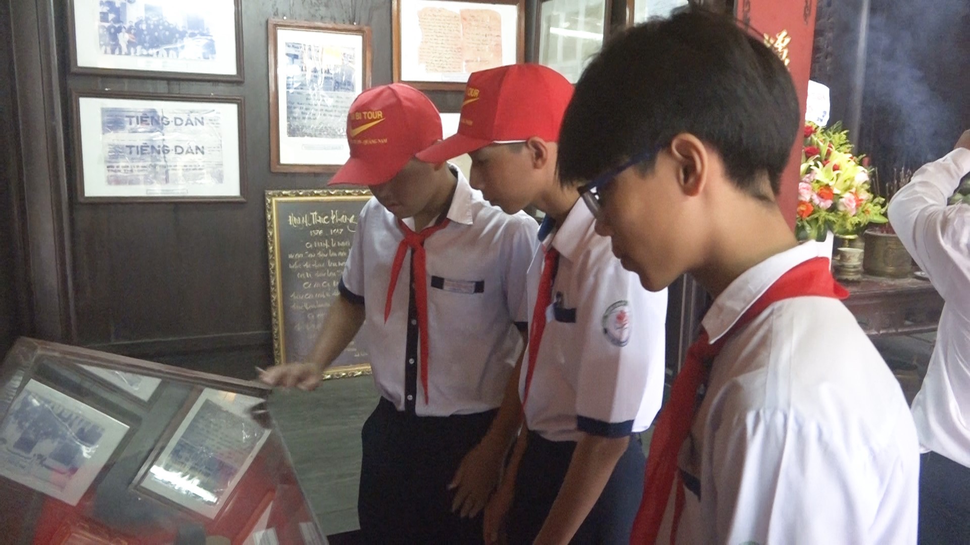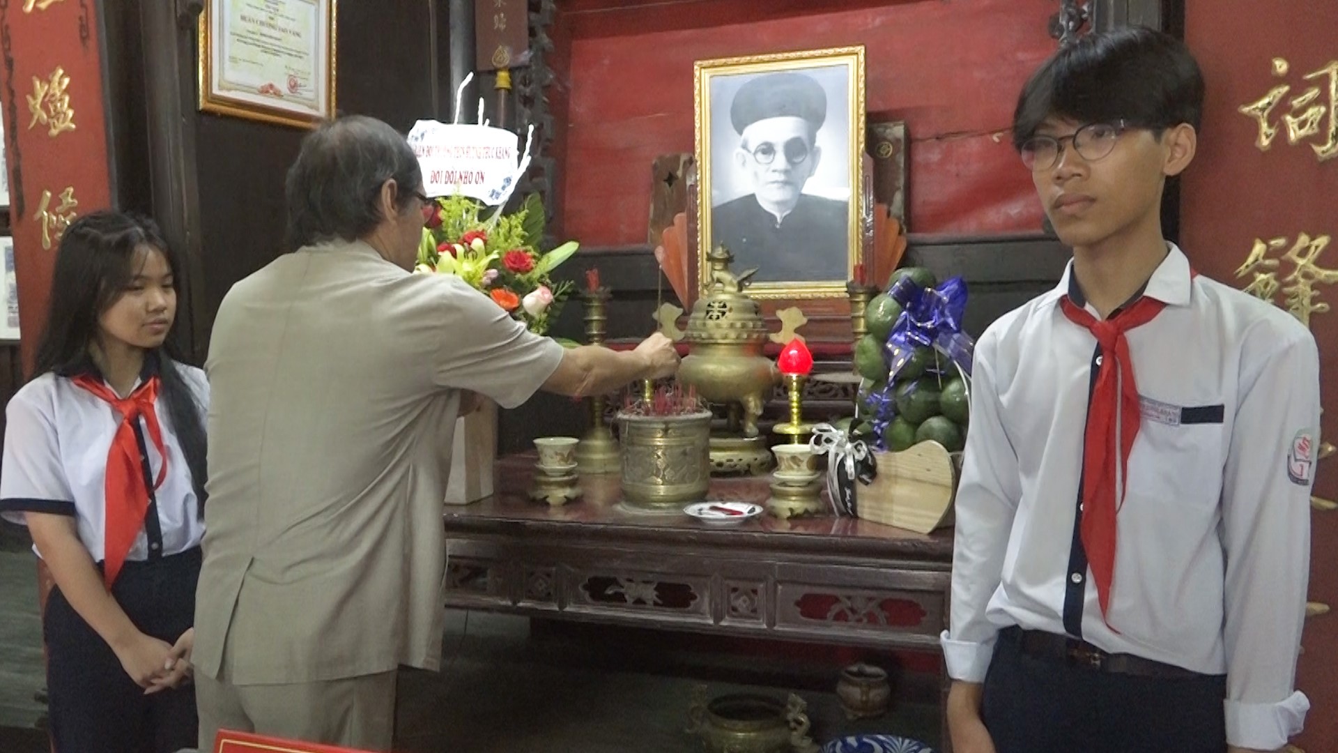 - Tại nhà lưu niệm, học sinh dâng hoa, báo công và tìm hiểu những tư liệu thực tế về cụ Huỳnh Thúc Kháng