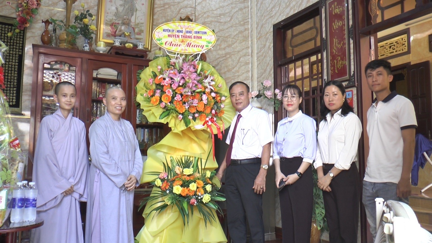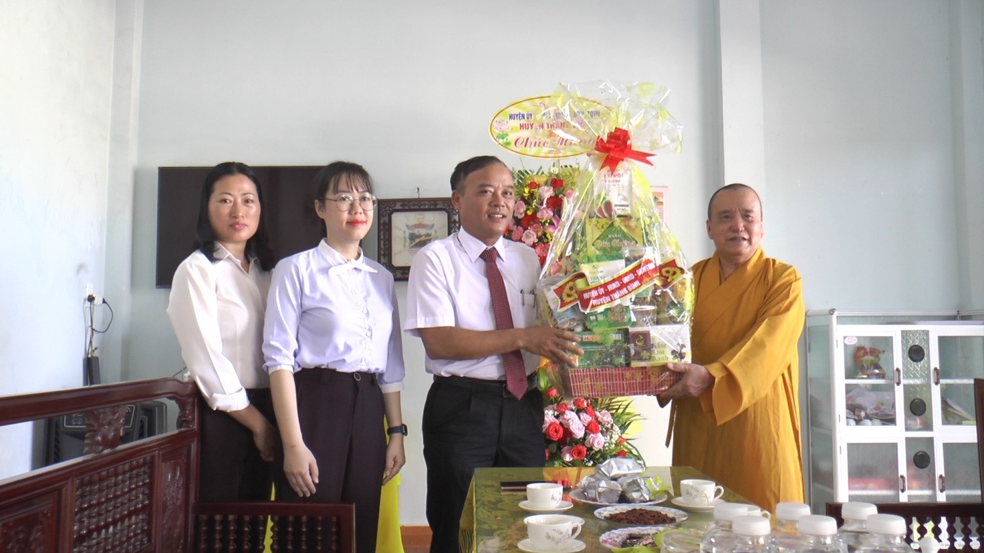 (Ảnh: Chủ tịch UBND huyện thăm, chúc mừng các vị chức sắc, tăng ni phật tử nhân dịp Đại lễ Phật Đản)