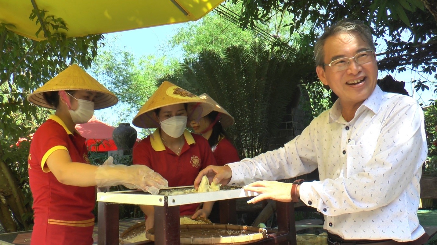 Tại đây, Đoàn đã đi thăm cơ sở sản xuất nước mắm Tám Tươi, Làng nghề truyền thống nước mắm Cửa Khe (xã Bình Dương) và Cơ sở Yến sào Đất Quảng (xã Bình Đào)…