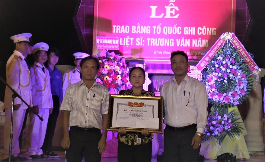 Sau ngày miền Nam hoàn toàn giải phóng, gia đình đồng chí Trương Văn Năm không rõ tin tức, hồ sơ bị thất lạc; đến nay mới tìm được thông tin. Ban Chỉ huy quân sự xã Bình Đào phối hợp với các cơ quan liên quan và gia đình hoàn chỉnh hồ sơ đề nghị Chính phủ cấp Bằng Tổ quốc ghi công đối với Liệt sĩ Trương Văn Năm. Ngày 19/7/2023, Thủ tướng Chính phủ đã ký quyết định cấp Bằng Tổ quốc ghi công đối với Liệt sĩ Trương Văn Năm.