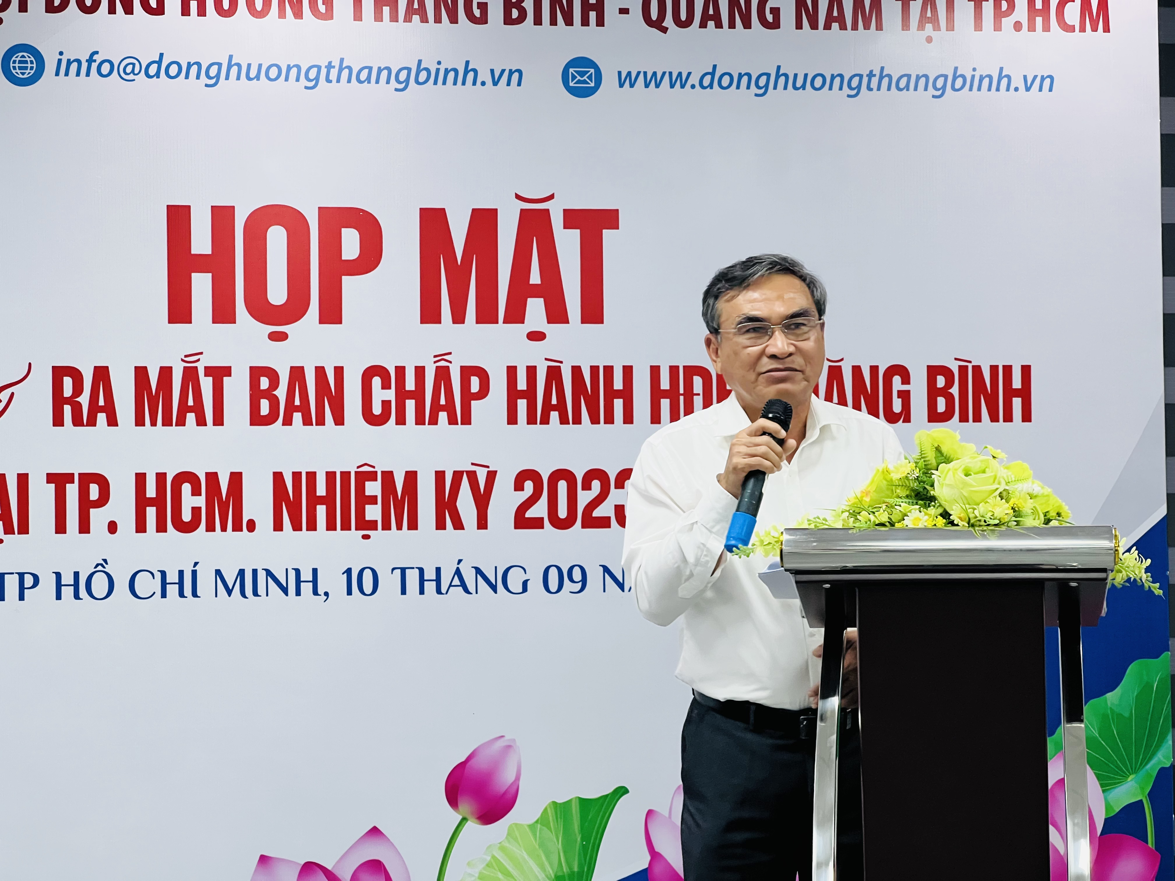 Phát biểu tại cuộc họp, Bí thư Huyện ủy Phan Công Vỹ đã thông tin tình hình phát triển kinh tế - xã hội của huyện và định hướng quy hoạch, phát triển trong thời gian đến. Đồng thời, khẳng định sự quan tâm, ủng hộ của lãnh đạo huyện đối với Hội đồng hương của huyện tại Thành phố Hồ Chí Minh, mong muốn trong thời gian đến Hội Đồng hương sẽ tiếp tục phát huy vai trò cầu nối của người dân Thăng Bình tại Thành phố Hồ Chí Minh, đoàn kết, tương trợ, hỗ trợ nhau trên mọi mặt đời sống. Cũng trong dịp này, thay mặt lãnh đạo huyện, đồng chí Phan Công Vỹ cảm ơn Hội đồng hương và bà con Thăng Bình tại Thành phố Hồ Chí Minh trong thời gian qua đã không ngừng đóng góp, hỗ trợ cùng với Đảng bộ, chính quyền huyện xây dựng, phát triển quê hương Thăng Bình, đặc biệt trong khuyến học, khuyến tài, hỗ trợ người dân phát triển sản xuất, thoát nghèo bền vững,….