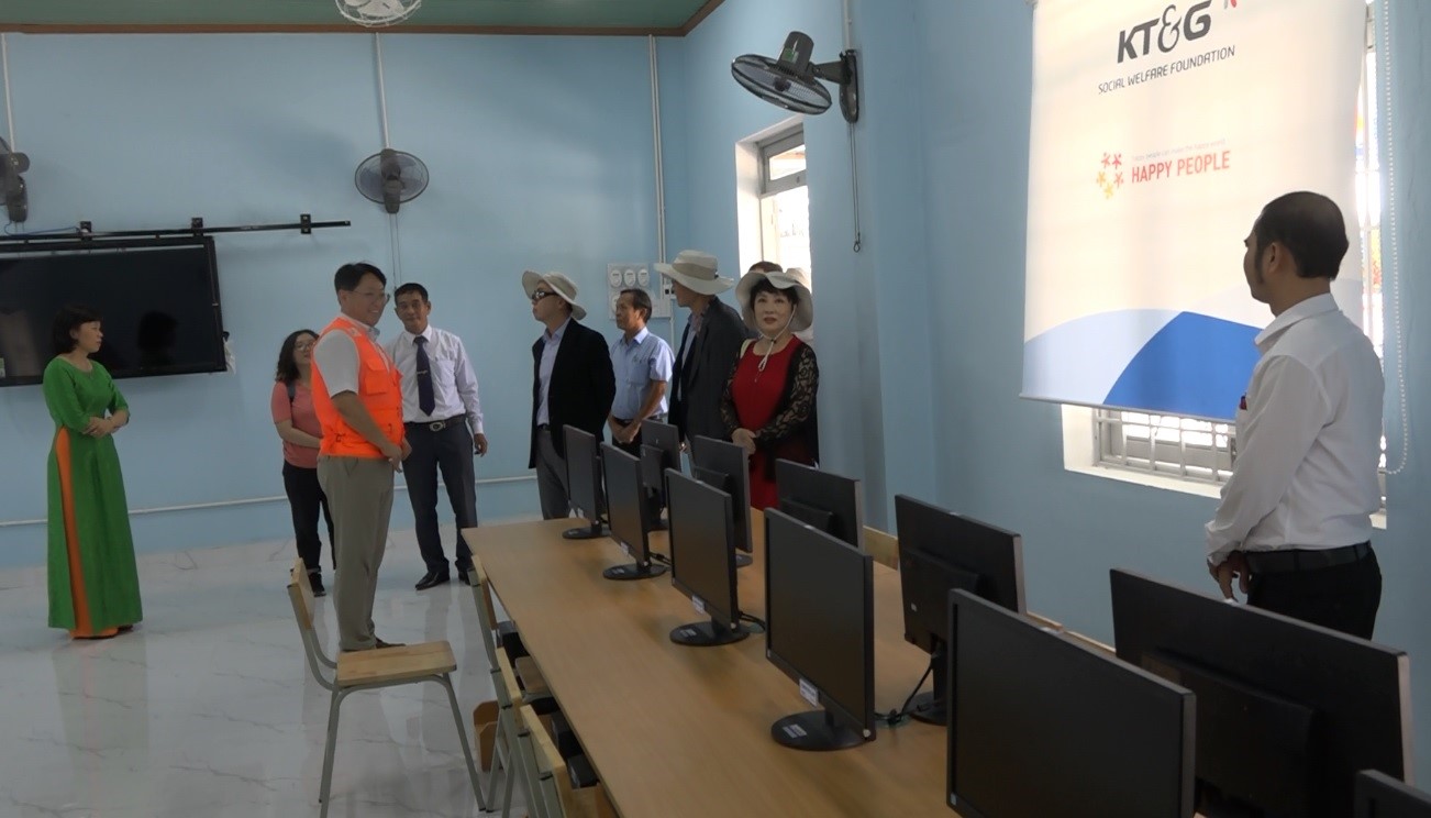 Đại diện tổ chức Happy People – Quỹ KT&G Hàn Quốc trao quà cho các em học sinh