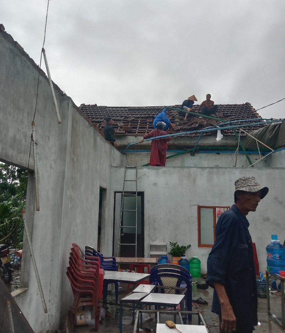 Trong 3 ngôi nhà bị tốc mái, có 2 nhà bị thiệt hại nhẹ, 1 nhà bị tốc mái ngói 50% và toàn bộ mái tôn trước nhà; ngoài ra, ngói rơi làm 1 người bị thương nhẹ.
