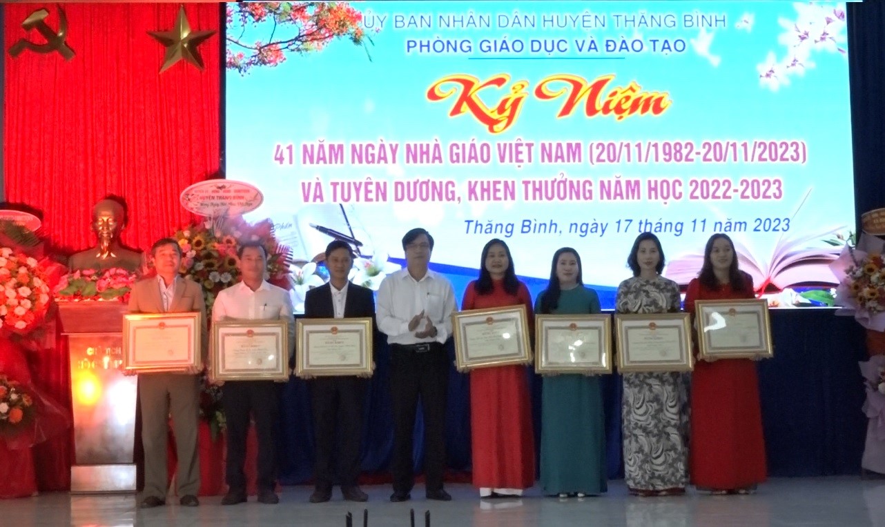 Ghi nhận những kết quả trên, UBND tỉnh Quảng Nam đã tặng cờ thi đua xuất sắc cho 3 tập thể; Bộ Giáo dục và Đào tạo tặng Bằng khen cho 1 tập thể và 1 cá nhân; 24 tập thể được UBND tỉnh công nhận tập thể lao động xuất sắc;14 cá nhân được UBND tỉnh Quảng Nam tặng Bằng khen; 14 cá nhân được công nhận đạt danh hiệu chiến sỹ thi đua cấp tỉnh; 263 cá nhân đạt danh hiệu chiến sỹ thi đua cấp cơ sở; UBND huyện Thăng Bình khen thưởng cho 10 tập thể và 139 cá nhân.