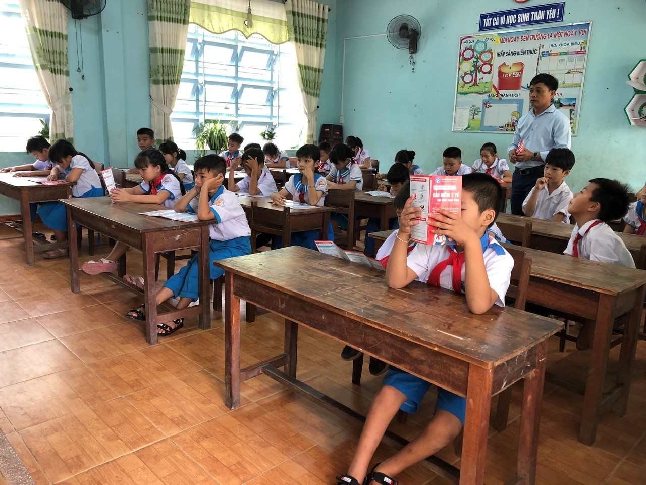 BHXH huyện phát tờ rơi tuyên truyền BHYT cho học sinh