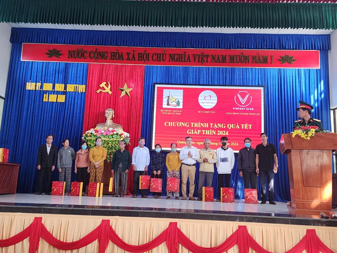 Quỹ Thiện tâm phối hợp với Bộ CHQS tỉnh tặng quà cho gia đình chính sách và hộ nghèo tại xã Bình Nam