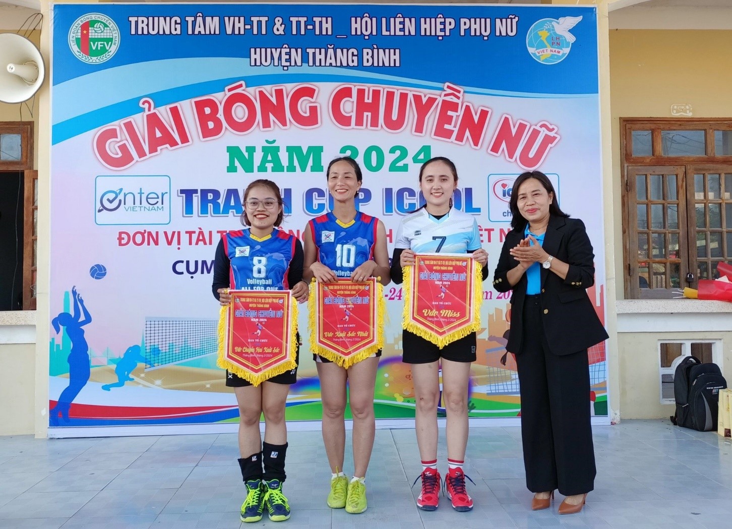 Ngoài ra, trao giải cầu thủ xuất sắc nhất cho vận động viên Phan Thị Lệ Mỹ (xã Bình Nguyên); giải chuyền hai xuất sắc nhất cho vận động viên Nguyễn Thị Thu Hương (xã Bình Nguyên); danh hiệu hoa khôi cho vận động viên Vũ Thị Thùy Oanh (thị trấn Hà Lam).
