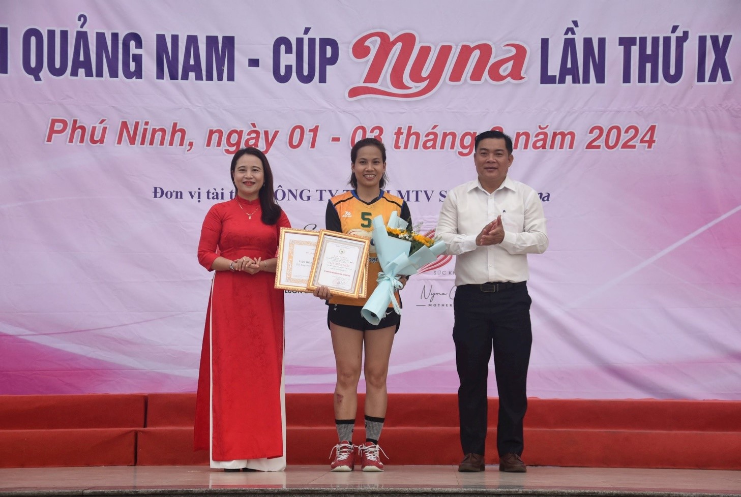 (Ảnh: Trao giải vận động viên xuất sắc nhất cho Trương Thị Thu Sương (Thăng Bình))