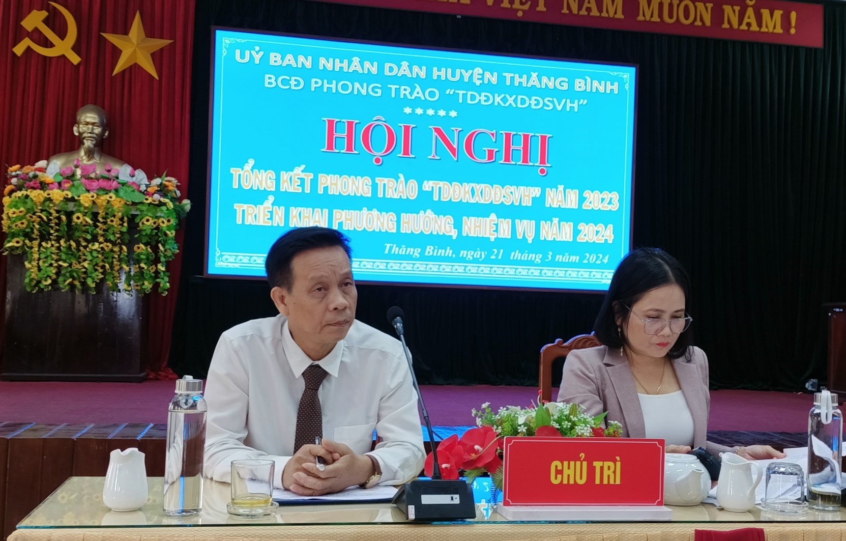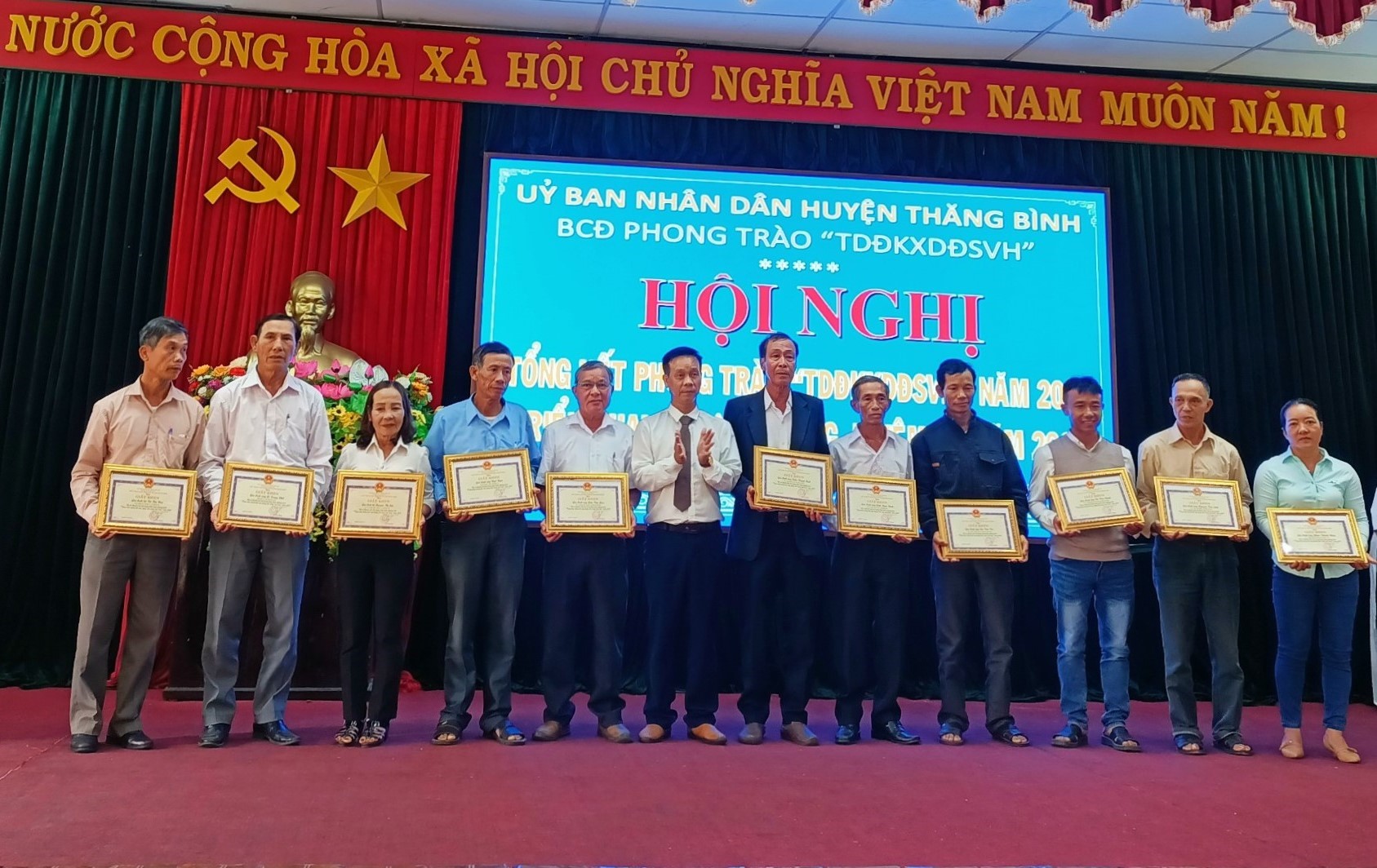 Năm 2023, Ban chỉ đạo Phong trào “TDĐKXDĐSVH” huyện Thăng Bình tổ chức thực hiện và đạt được nhiều kết quả từ xây dựng gia đình văn hóa (GĐVH), tộc họ văn hóa, thôn, khu phố văn hóa đến cơ quan, đơn vị, doanh nghiệp đạt chuẩn cơ quan văn minh. Phong trào này đã tác động tích cực đến nhiều mặt đời sống kinh tế, văn hóa, xã hội của huyện nhà. Đến nay, Thăng Bình có 45.854 hộ đạt GĐVH (chiếm tỷ lệ 83,04%). Trong đó, có 71 GĐVH tiêu biểu 5 năm liền (2018-2023) được khen thưởng.