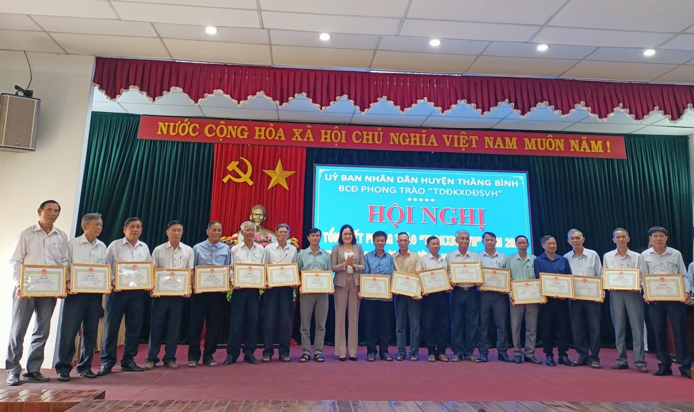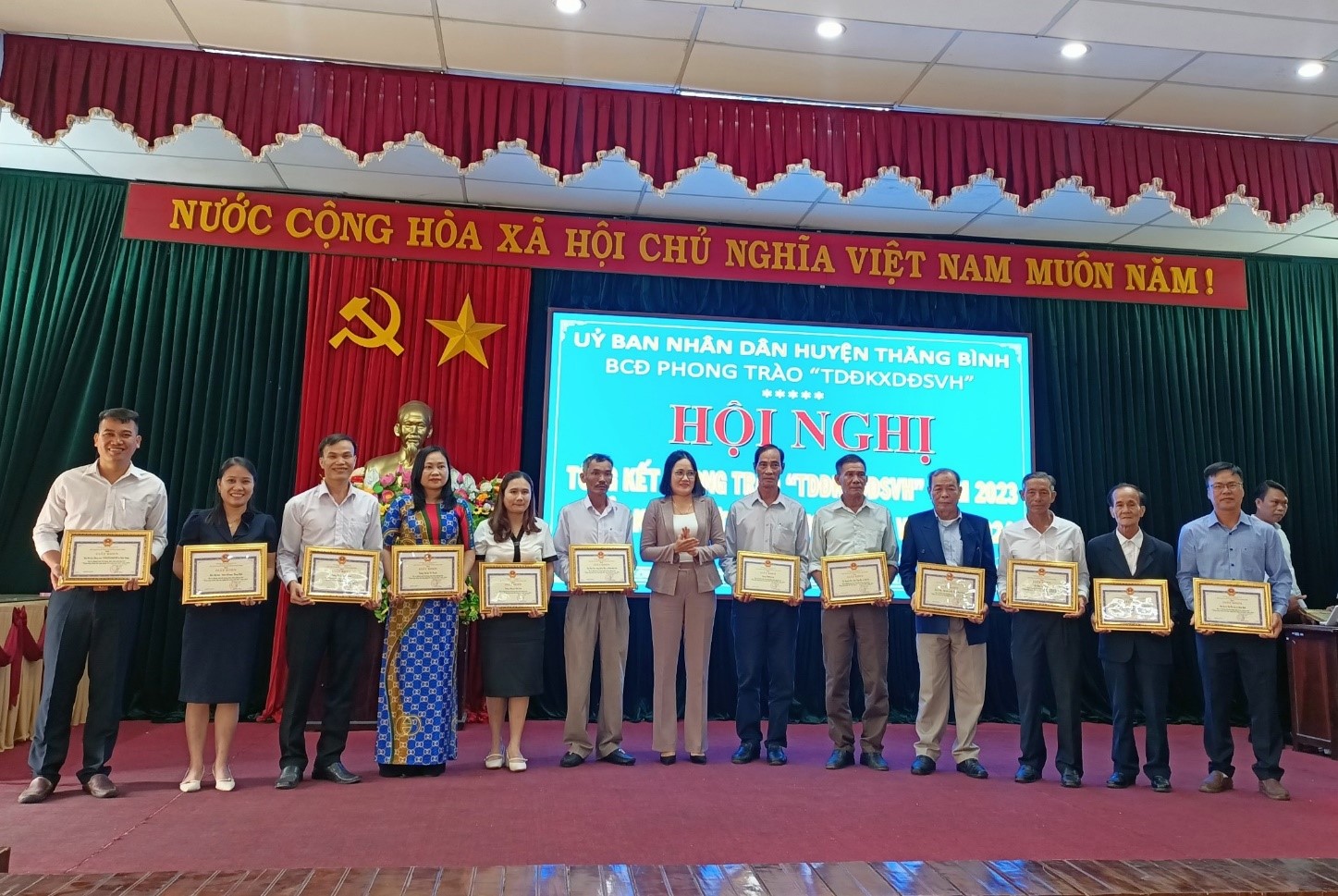 Hội nghị đã trao Giấy công nhận 86 thôn, khu phố văn hóa; khen thưởng cho 28 tập thể, 22 hộ gia đình và 13 cá nhân có nhiều đóng góp cho phong trào “TDĐKXDĐSVH” năm 2023.