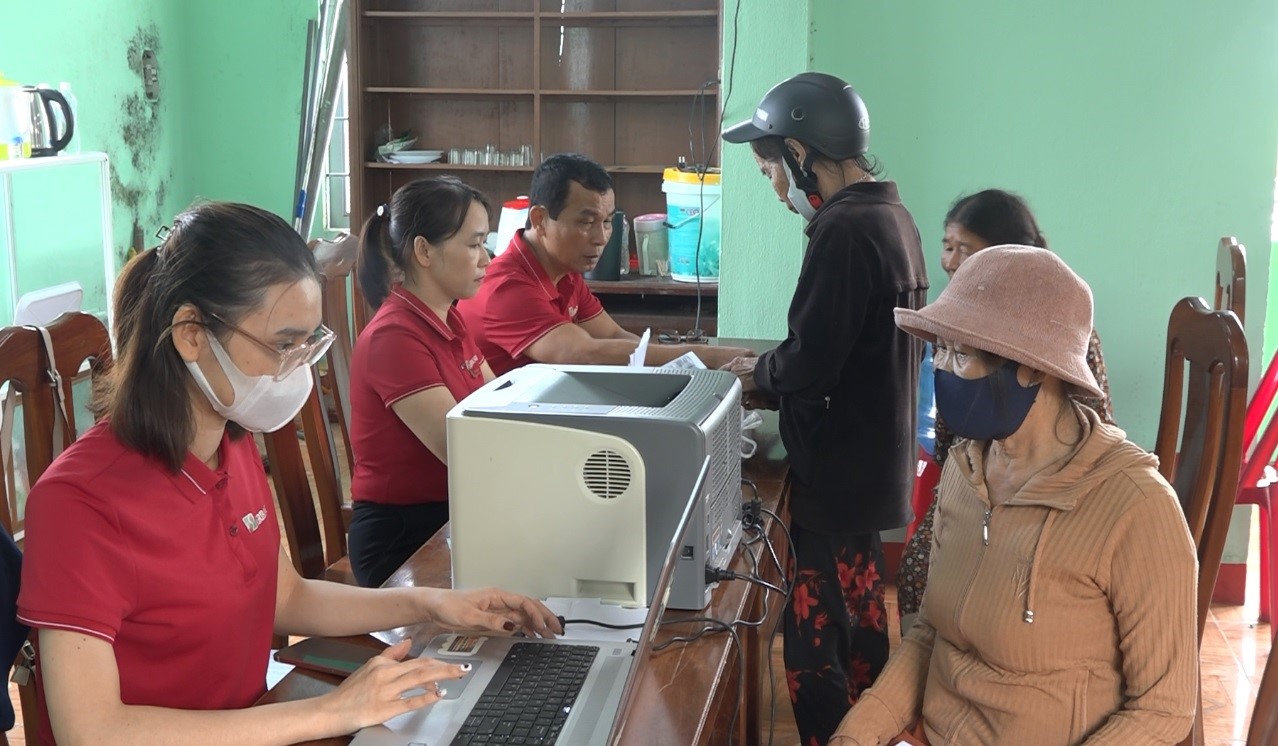 Gần một tháng nay, cán bộ, nhân viên Agribank Phòng Giao dịch Bình Quý trực thuộc Ngân hàng Agribank Thăng Bình luôn có mặt tại các xã cánh tây của huyện Thăng Bình để cùng địa phương triển khai, hướng dẫn NCC và đối tượng BTXH thực hiện các bước đăng ký làm thẻ ngân hàng để nhận trợ cấp hằng tháng qua thẻ, không chi trả bằng tiền mặt.